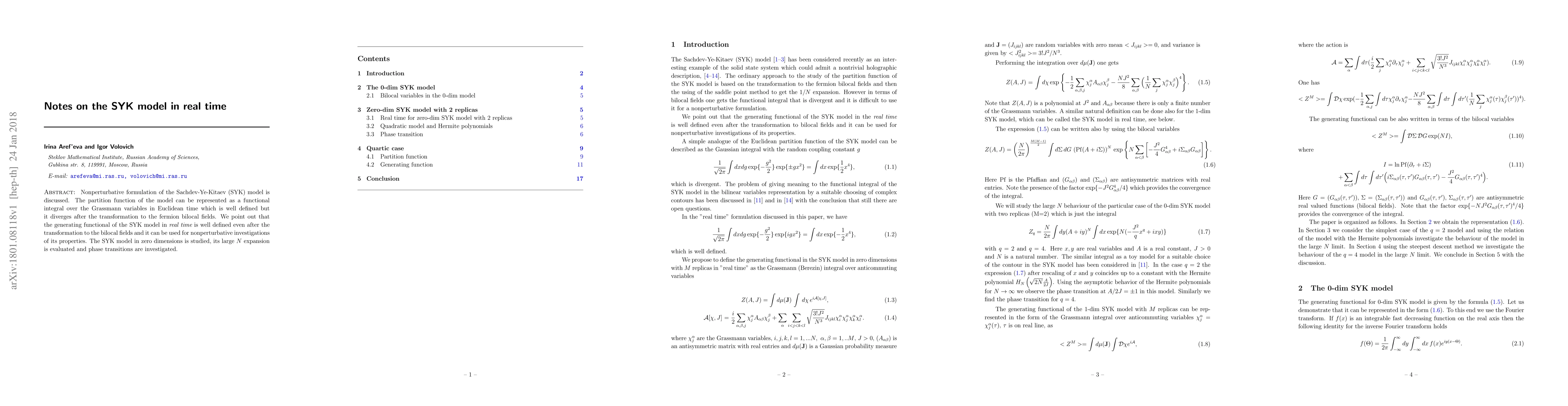 This paper discusses a nonperturbative formulation of the SYK model, showing that its generating functional in real time is well-defined post-transformation to fermion bilocal fields. It also explores the zero-dimensional SYK model, evaluates its large N expansion, and investigates associated phase transitions.