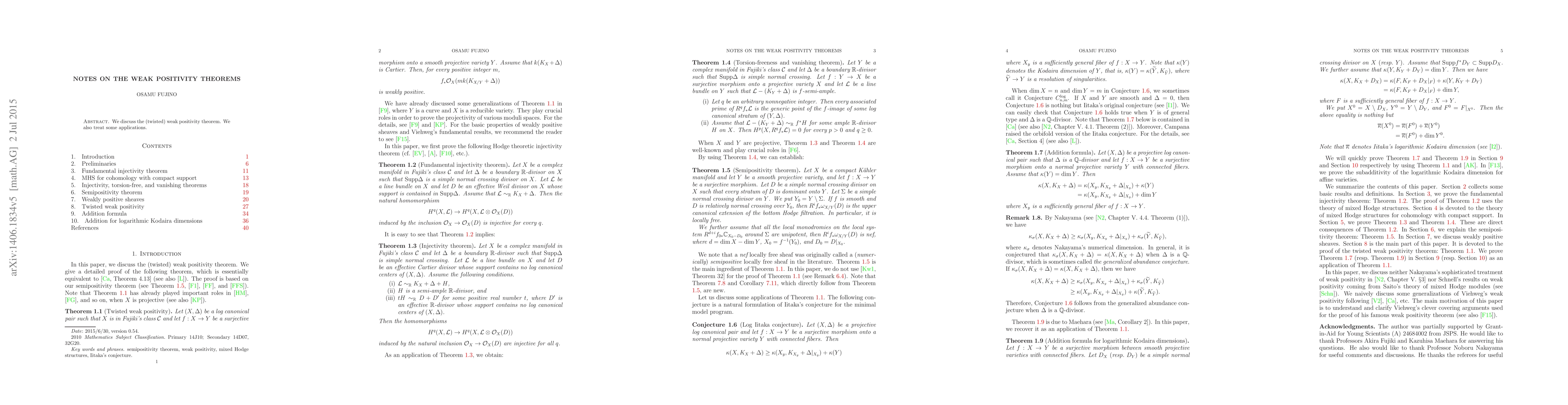 We discuss the (twisted) weak positivity theorem. We also treat some applications.