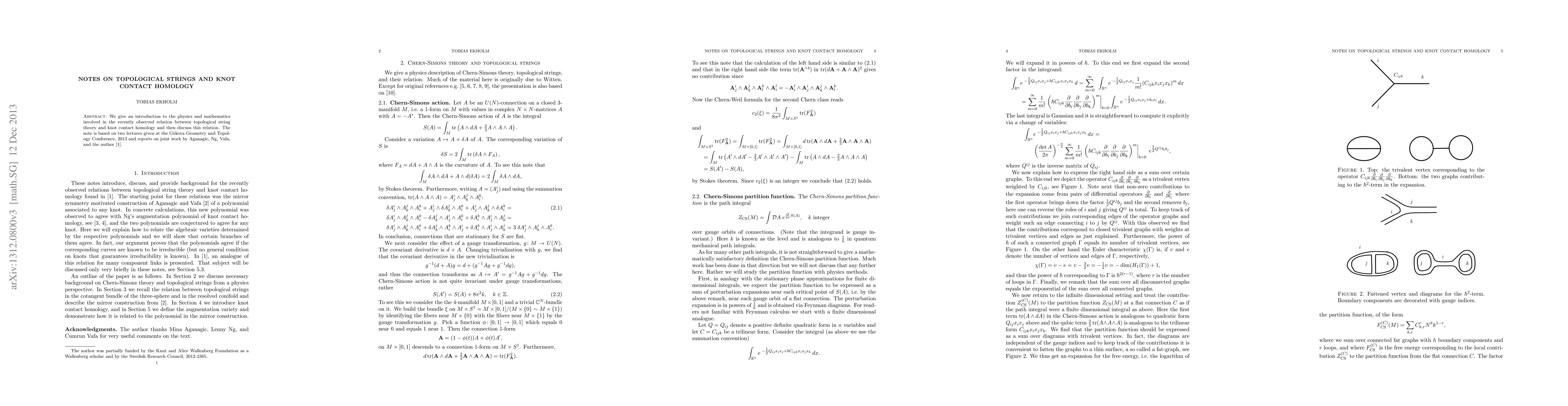 This paper introduces the connection between topological string theory and knot contact homology, highlighting the collaborative work between Aganagic, Ng, Vafa, and the author, based on lectures from the 2013 Gokova Geometry and Topology Conference. The authors discuss the physical and mathematical implications of this emerging relationship.