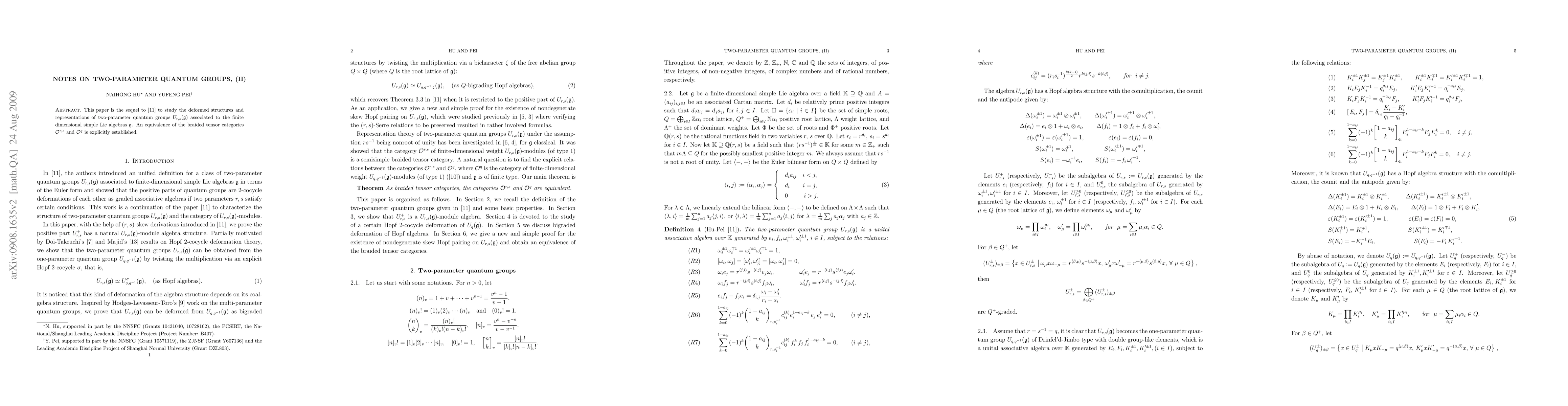The construction and analysis of two-parameter quantum groups, including their representation theory and twisted quasitriangular Hopf algebras.