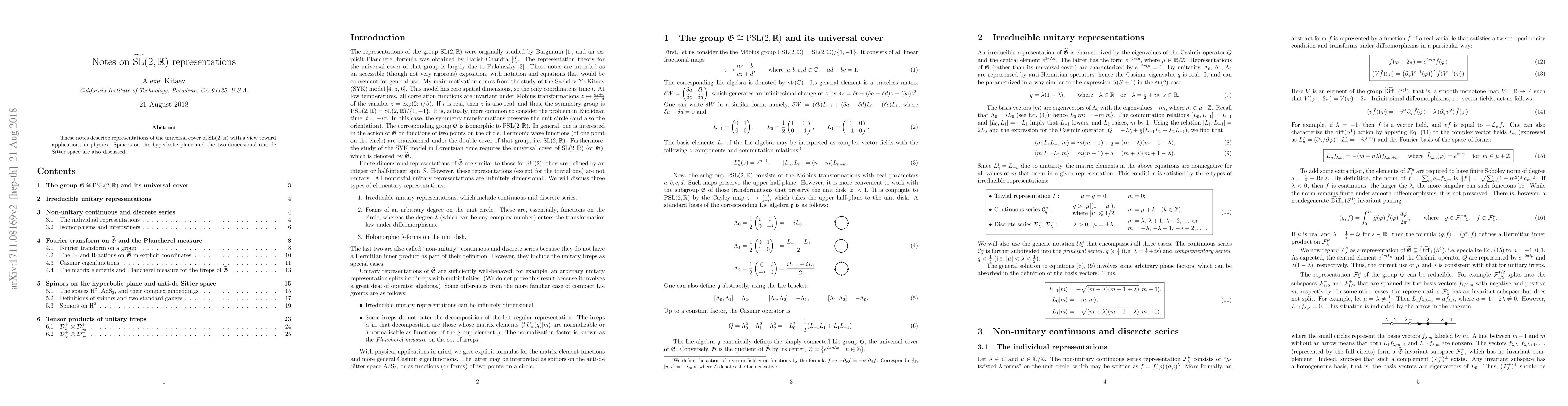 This paper explores representations of the universal cover of $\mathrm{SL}(2,\mathbb{R})$, focusing on their applications in physics, and discusses spinors in the context of the hyperbolic plane and two-dimensional anti-de Sitter space.