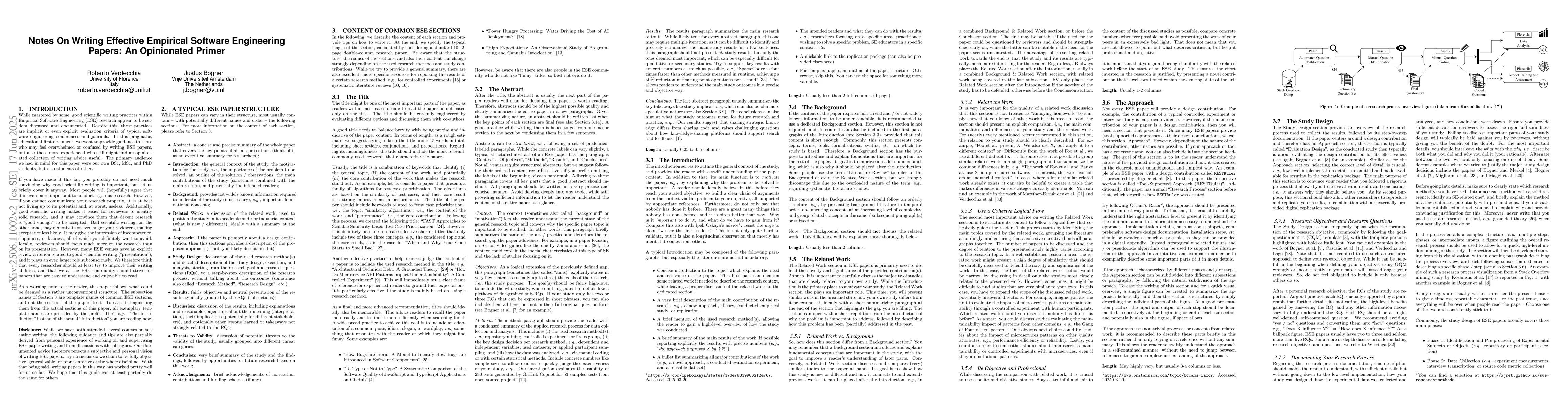 This opinionated primer offers writing guidance for Empirical Software Engineering (ESE) papers, aiming to help students and experienced researchers alike. The authors share their subjective yet effective writing practices, acknowledging it's not exhaustive or fully generalizable, but it has served them well.
