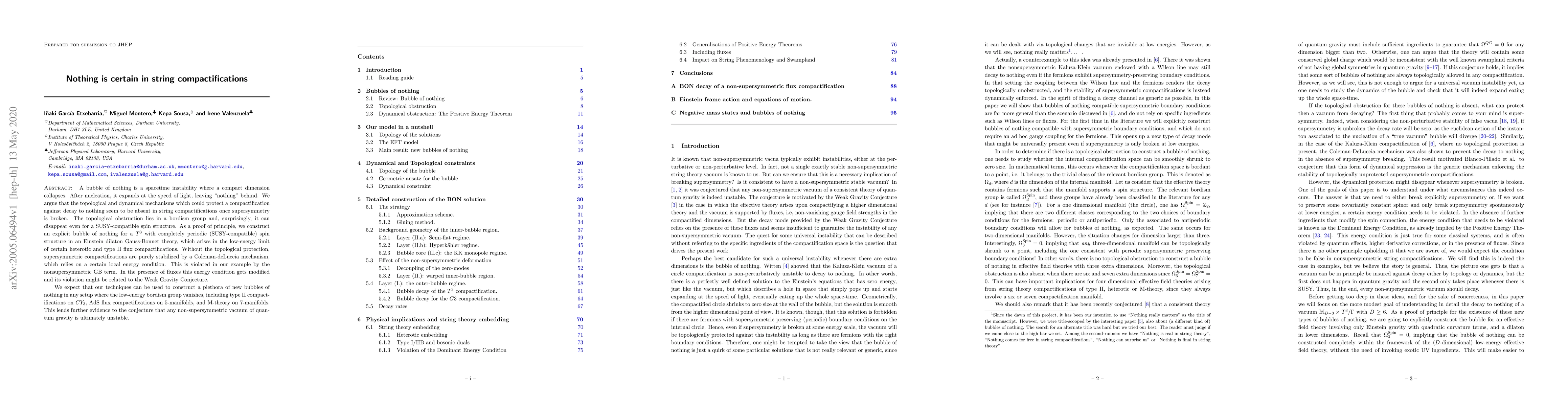 A bubble of nothing is a spacetime instability where a compact dimension collapses. After nucleation, it expands at the speed of light, leaving "nothing" behind. We argue that the topological and dynamical mechanisms which could protect a compactification against decay to nothing seem to be absent in string compactifications once supersymmetry is broken. The topological obstruction lies in a bordism group and, surprisingly, it can disappear even for a SUSY-compatible spin structure. As a proof of principle, we construct an explicit bubble of nothing for a $T^3$ with completely periodic (SUSY-compatible) spin structure in an Einstein dilaton Gauss-Bonnet theory, which arises in the low-energy limit of certain heterotic and type II flux compactifications. Without the topological protection, supersymmetric compactifications are purely stabilized by a Coleman-deLuccia mechanism, which relies on a certain local energy condition. This is violated in our example by the nonsupersymmetric GB term. In the presence of fluxes this energy condition gets modified and its violation might be related to the Weak Gravity Conjecture. We expect that our techniques can be used to construct a plethora of new bubbles of nothing in any setup where the low-energy bordism group vanishes, including type II compactifications on $CY_3$, AdS flux compactifications on 5-manifolds, and M-theory on 7-manifolds. This lends further evidence to the conjecture that any non-supersymmetric vacuum of quantum gravity is ultimately unstable.