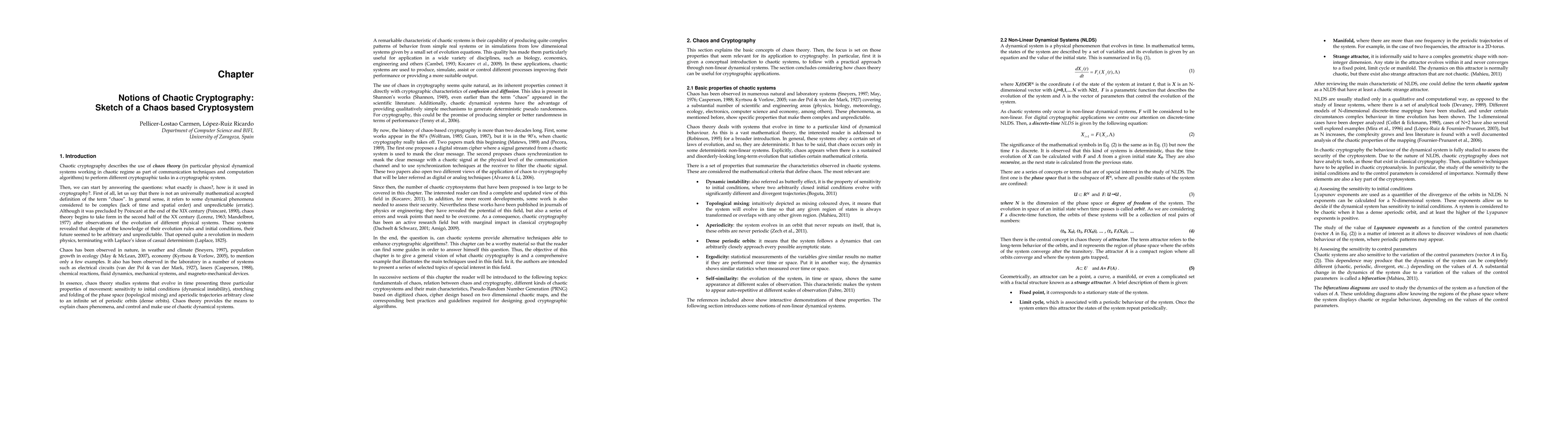 Chaotic cryptography describes the use of chaos theory (in particular physical dynamical systems working in chaotic regime as part of communication techniques and computation algorithms) to perform different cryptographic tasks in a cryptographic system. In the end, the question is, can chaotic systems provide alternative techniques able to enhance cryptographic algorithms?. This chapter can be a worthy material to guide the reader in order to answer himself this question. Thus, the objective of this chapter is to give a general vision of what chaotic cryptography is and a comprehensive example that illustrates the main techniques used in this field.