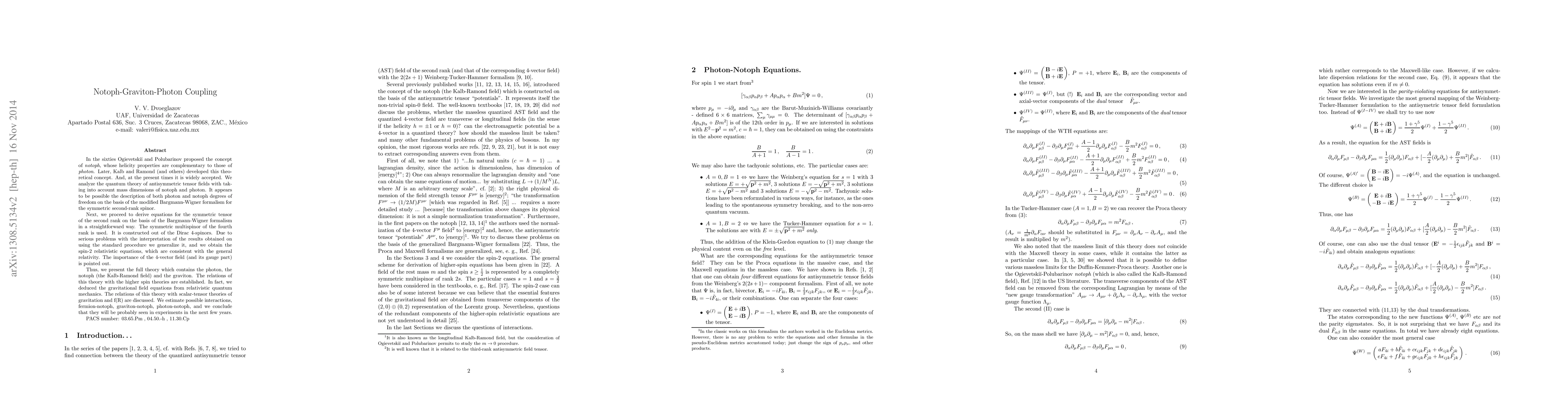 This paper explores the quantum theory of antisymmetric tensor fields, including the coupling of notophs (Kalb-Ramond fields) with photons and gravitons. It utilizes the modified Bargmann-Wigner formalism to describe the interactions and derive relativistic equations consistent with general relativity, estimating possible interactions such as fermion-notoph, graviton-notoph, and photon-notoph.