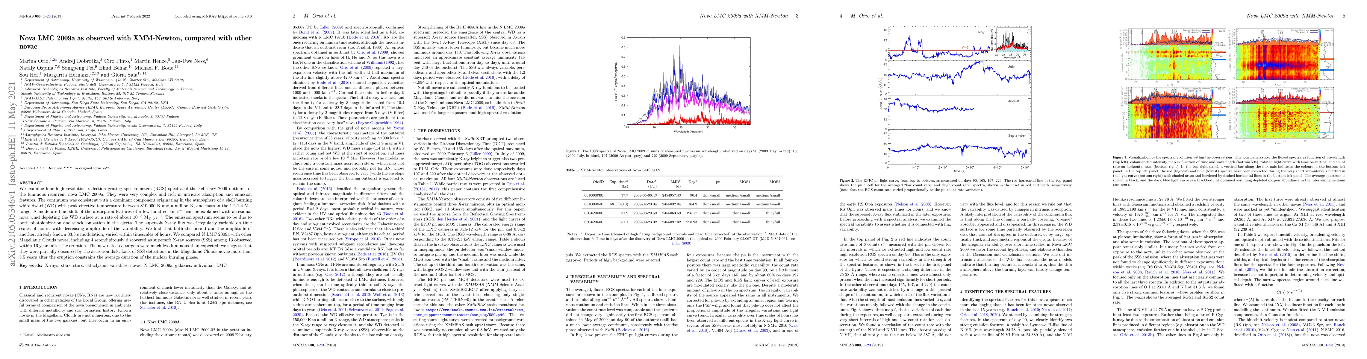 Researchers analyzed the XMM-Newton spectra of LMC 2009a, a luminous recurrent nova, to understand its characteristics, including a shell-burning white dwarf and variable supersoft X-ray flux. The study also compared it with other Magellanic Cloud novae to constrain their average duration of nuclear burning.