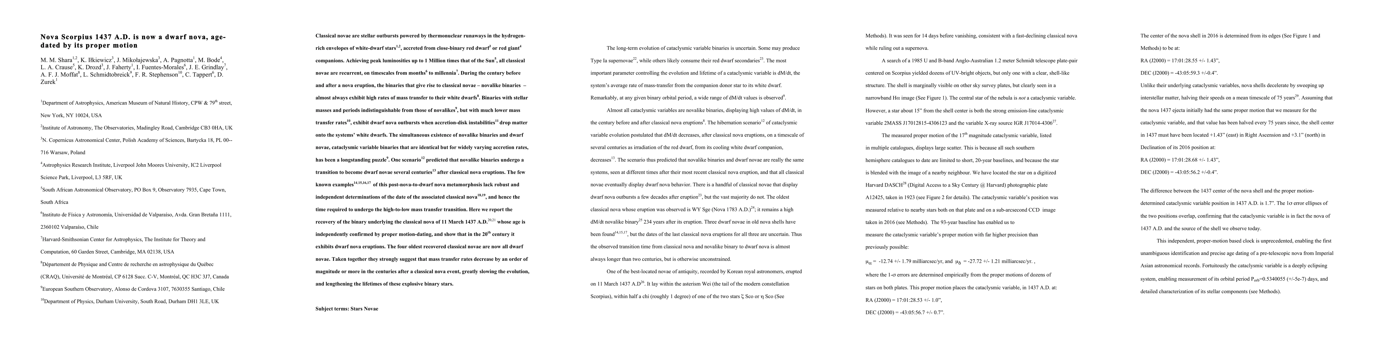 This paper reports the recovery of the binary system underlying the classical nova of 1437 A.D., now identified as a dwarf nova, with its age confirmed by proper motion-dating. The findings suggest that mass transfer rates significantly decrease post-nova, slowing the evolution and extending the lifetimes of these binary stars.