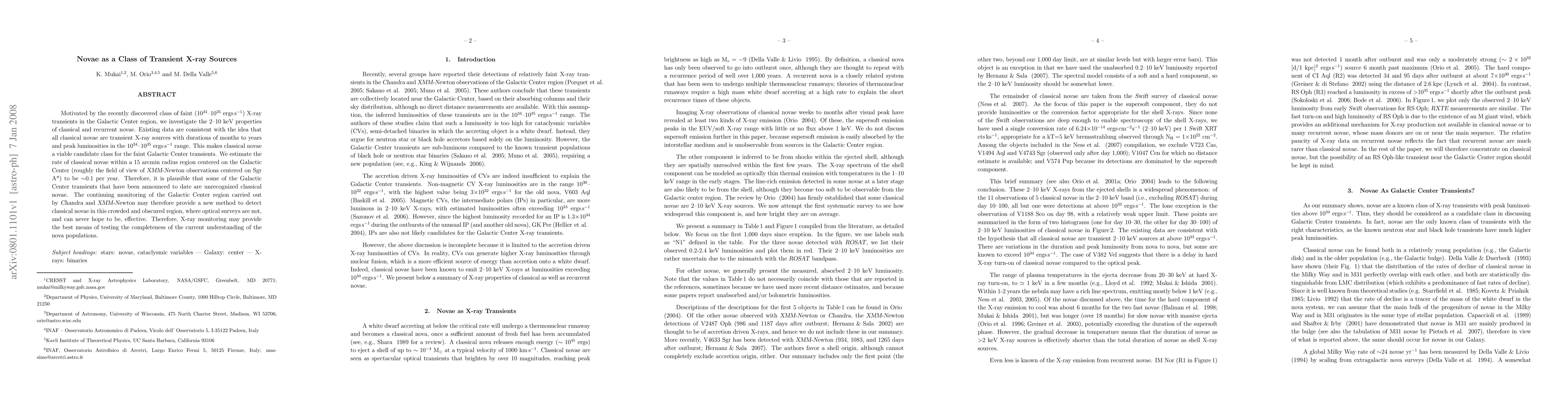 The paper presents a detailed analysis of nova X-ray properties and proposes X-ray monitoring as a method for nova detection in the Galactic Center, contributing to the understanding of transient X-ray sources.