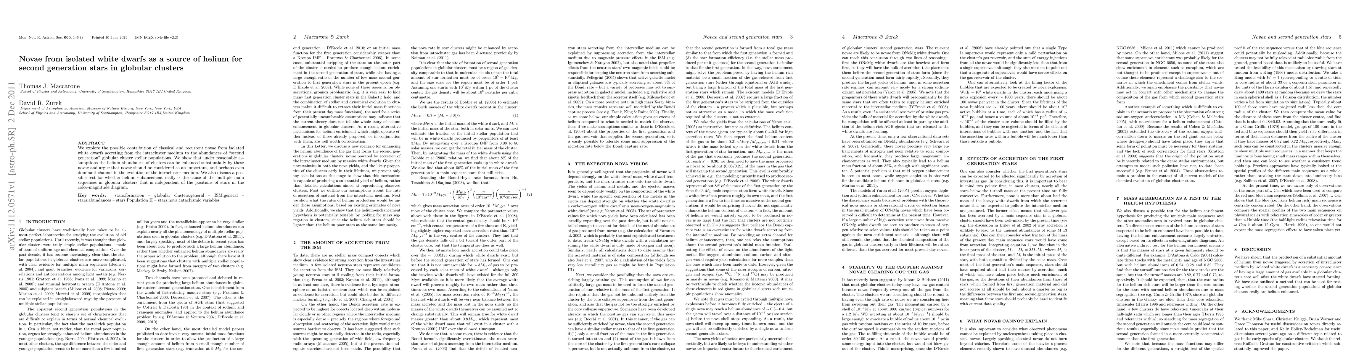 This paper investigates how novae from isolated white dwarfs in globular clusters can significantly enhance the helium abundance of "second generation" stars. It suggests that novae may be a dominant source for this enhancement and proposes a test to verify if helium enrichment is responsible for the multiple main sequences observed in these clusters.