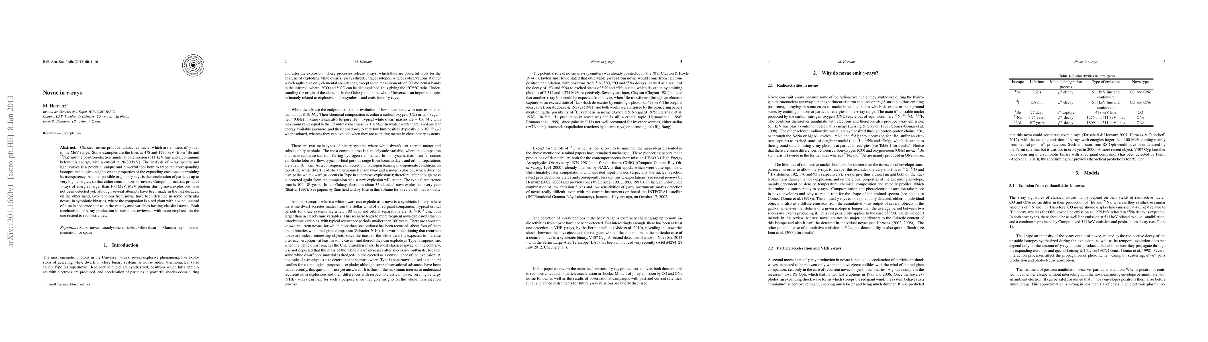This paper reviews the mechanisms of gamma-ray production in classical novae, focusing on the emission from radioactive nuclei and the acceleration of particles. It highlights the potential of gamma-ray spectra to trace isotopes and understand the expanding envelope's properties.