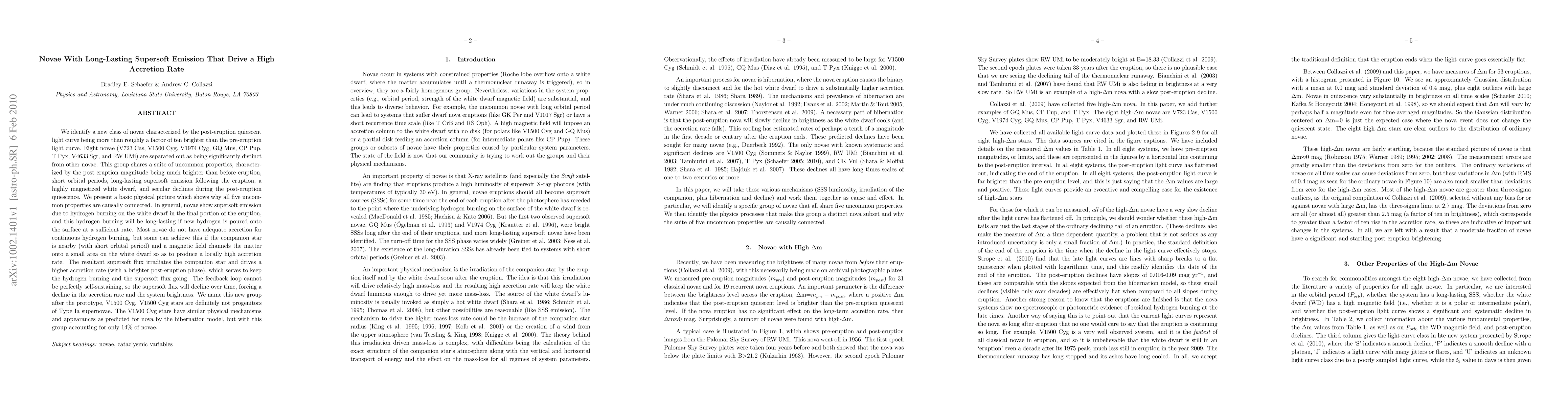 We identify a new class of novae characterized by the post-eruption quiescent light curve being more than roughly a factor of ten brighter than the pre-eruption light curve. Eight novae (V723 Cas, V1500 Cyg, V1974 Cyg, GQ Mus, CP Pup, T Pyx, V4633 Sgr, and RW UMi) are separated out as being significantly distinct from other novae. This group shares a suite of uncommon properties, characterized by the post-eruption magnitude being much brighter than before eruption, short orbital periods, long-lasting supersoft emission following the eruption, a highly magnetized white dwarf, and secular declines during the post-eruption quiescence. We present a basic physical picture which shows why all five uncommon properties are causally connected. Most novae do not have adequate accretion for continuous hydrogen burning, but some can achieve this if the companion star is nearby (with short orbital period) and a magnetic field channels the matter onto a small area on the white dwarf so as to produce a locally high accretion rate. The resultant supersoft flux irradiates the companion star and drives a higher accretion rate (with a brighter post-eruption phase), which serves to keep the hydrogen burning and the supersoft flux going. The feedback loop cannot be perfectly self-sustaining, so the supersoft flux will decline over time, forcing a decline in the accretion rate and the system brightness. We name this new group after the prototype, V1500 Cyg. V1500 Cyg stars are definitely not progenitors of Type Ia supernovae. The V1500 Cyg stars have similar physical mechanisms and appearances as predicted for nova by the hibernation model, but with this group accounting for only 14% of novae.