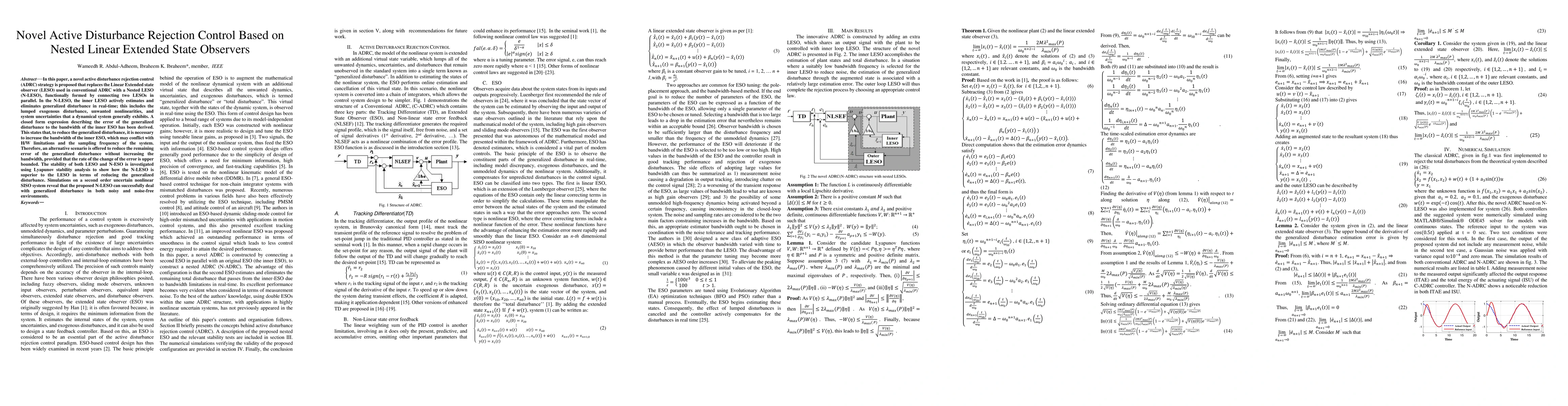 This paper proposes a Novel Active Disturbance Rejection Control (N-ADRC) strategy using a Nested Linear Extended State Observer (LESO) to improve disturbance estimation accuracy without increasing bandwidth. The nested LESO effectively reduces the Integral Time Absolute Error (ITAE) by 69.87% compared to conventional LESO.