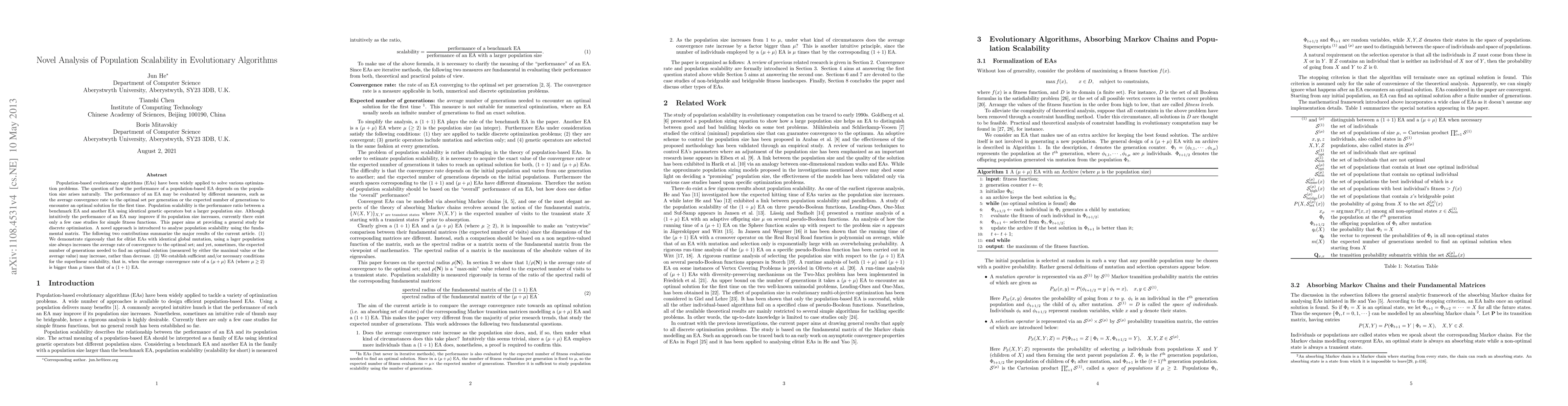 This paper investigates population scalability in evolutionary algorithms (EAs) through a novel analytical approach using the fundamental matrix. It demonstrates that while larger population sizes generally enhance the average convergence rate, they do not always reduce the expected number of generations to find an optimal solution. It also establishes conditions for superlinear scalability in elitist EAs.