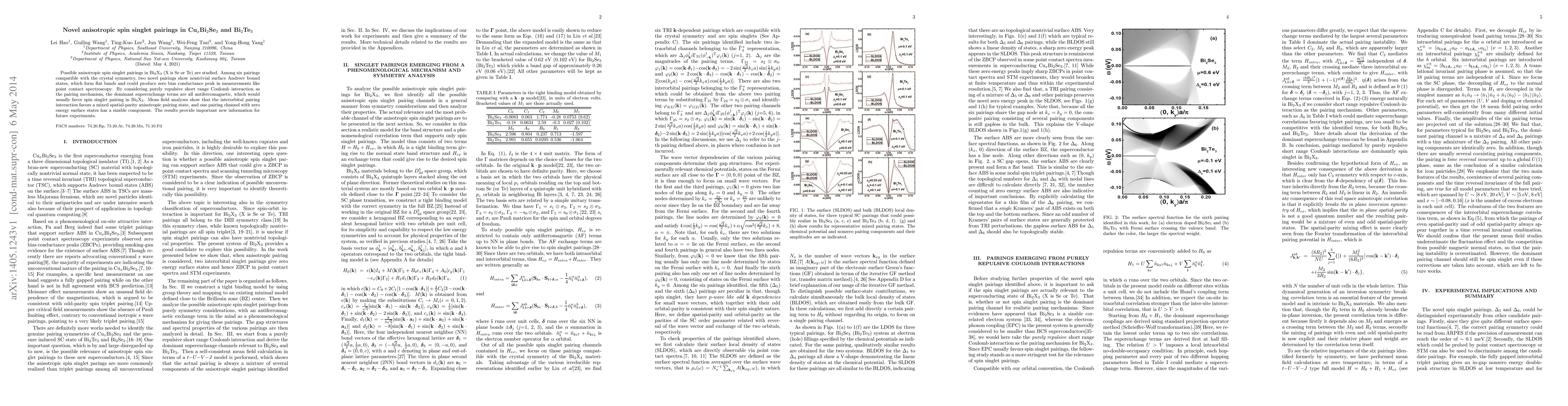 Researchers discovered novel spin singlet pairings in Cu$_x$Bi$_2$Se$_3$ and Bi$_2$Te$_3$, which could produce zero bias conductance peaks in experiments, providing new insights for future studies.
