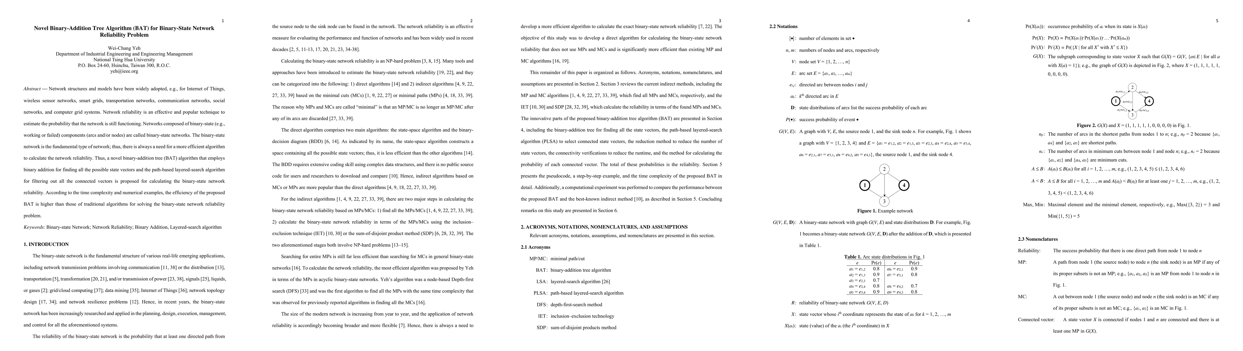The paper proposes a novel binary-addition tree (BAT) algorithm for calculating the reliability of binary-state networks, which uses binary addition and path-based layered search to efficiently determine network functionality. The BAT algorithm demonstrates higher efficiency compared to traditional methods, as shown by its lower time complexity and numerical examples.