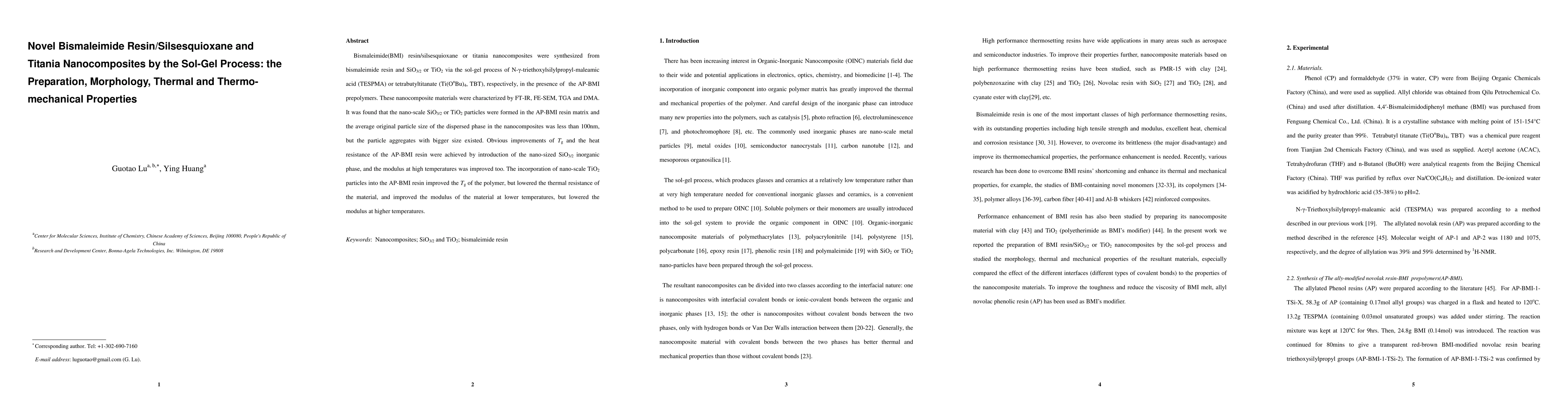 Researchers created nanocomposites of bismaleimide resin with silica or titanium dioxide particles, improving thermal properties like glass transition temperature and modulus, but affecting heat resistance in some cases.