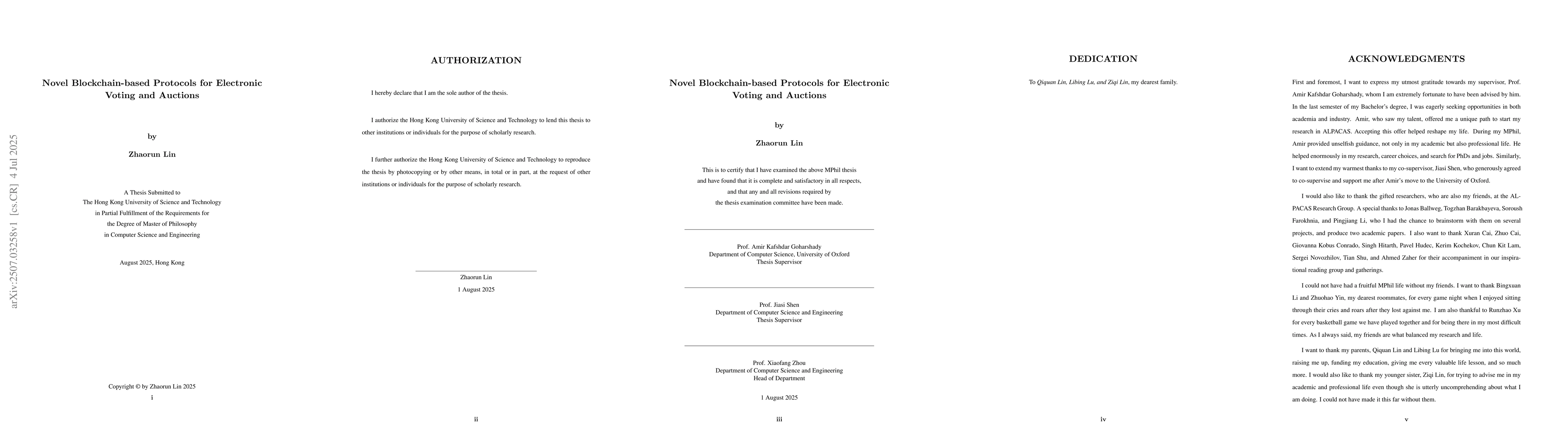 Programmable blockchains have long been a hot research topic given their tremendous use in decentralized applications. Smart contracts, using blockchains as their underlying technology, inherit the desired properties such as verifiability, immutability, and transparency, which make it a great suit in trustless environments. In this thesis, we consider several decentralized protocols to be built on blockchains, specifically using smart contracts on Ethereum. We used algorithmic and cryptographic tools in our implementations to further improve the level of security and efficiency beyond the state-of-the-art works. We proposed a new approach called Blind Vote, which is an untraceable, secure, efficient, secrecy-preserving, and fully on-chain electronic voting protocol based on the well-known concept of Chaum's blind signatures. We illustrate that our approach achieves the same security guarantees as previous methods such as Tornado Vote [1], while consuming significantly less gas. Thus, we provide a cheaper and considerably more gas-efficient alternative for anonymous blockchain-based voting. On the other hand, we propose a new family of algorithms for private, trustless auctions that protect bidder identities and bid values while remaining practical for smart contract execution. We ensure trustlessness by running the auction logic in a smart contract, thereby eliminating reliance on any single trusted party. This approach prevents bid tampering, front-running, and collusion by enforcing immutability and decentralized verification of bids. The resulting protocol uniquely combines efficiency, trustlessness, and enduring bid privacy, offering a scalable and secure solution for blockchain-based marketplaces and other decentralized applications.
