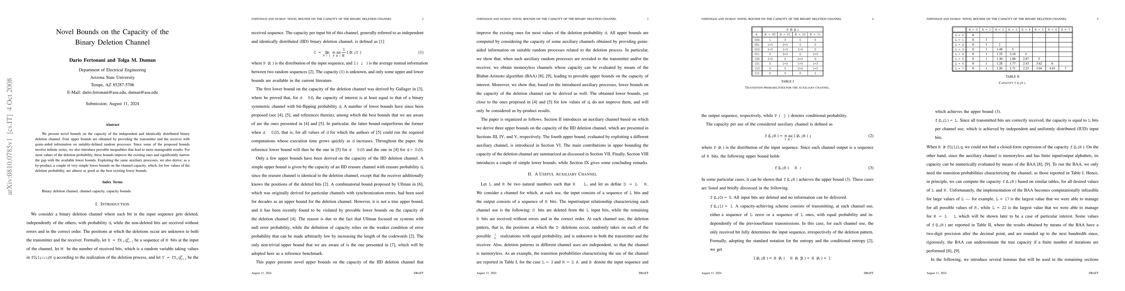 This paper introduces four novel upper bounds on the capacity of the binary deletion channel, leveraging genie-aided information and simplifying infinite series into provable inequalities. The new bounds significantly narrow the gap with existing lower bounds and also provide simple, effective lower bounds for low deletion probabilities.