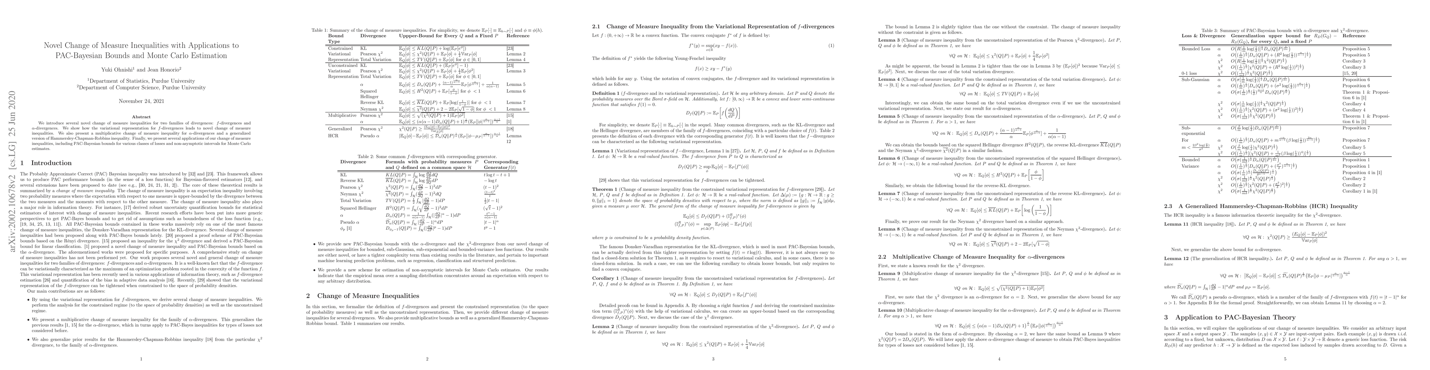 The paper introduces new inequalities for change of measure in $f$-divergences and $eta$-divergences with applications to PAC-Bayesian bounds and Monte Carlo estimation.