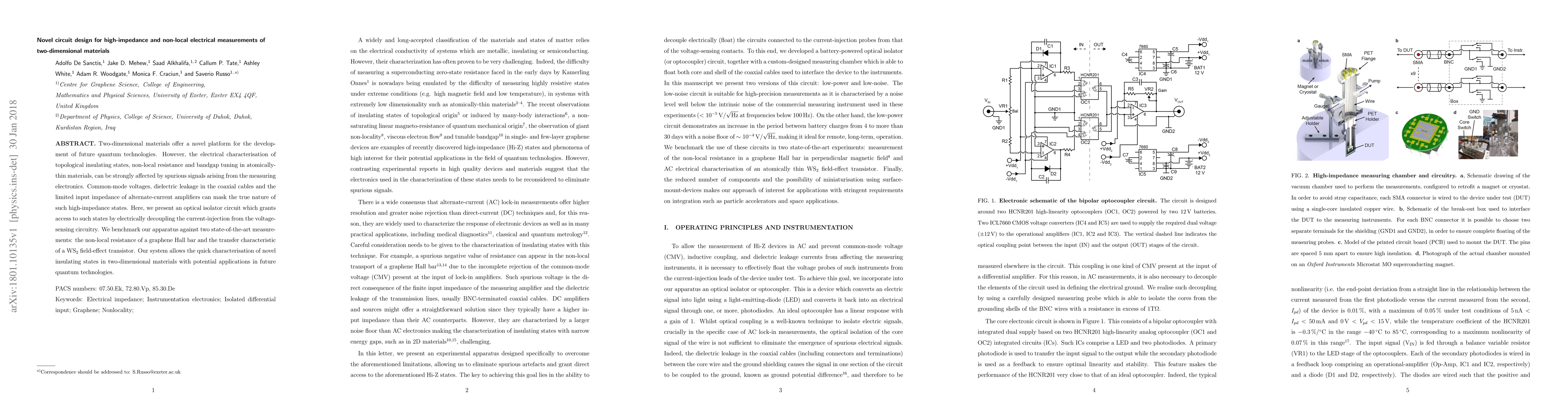 This paper introduces a novel optical isolator circuit designed to accurately measure high-impedance and non-local electrical properties in two-dimensional materials, overcoming issues caused by spurious signals. The proposed circuit electrically decouples current-injection from voltage-sensing, validated through benchmark measurements on graphene and WS2.