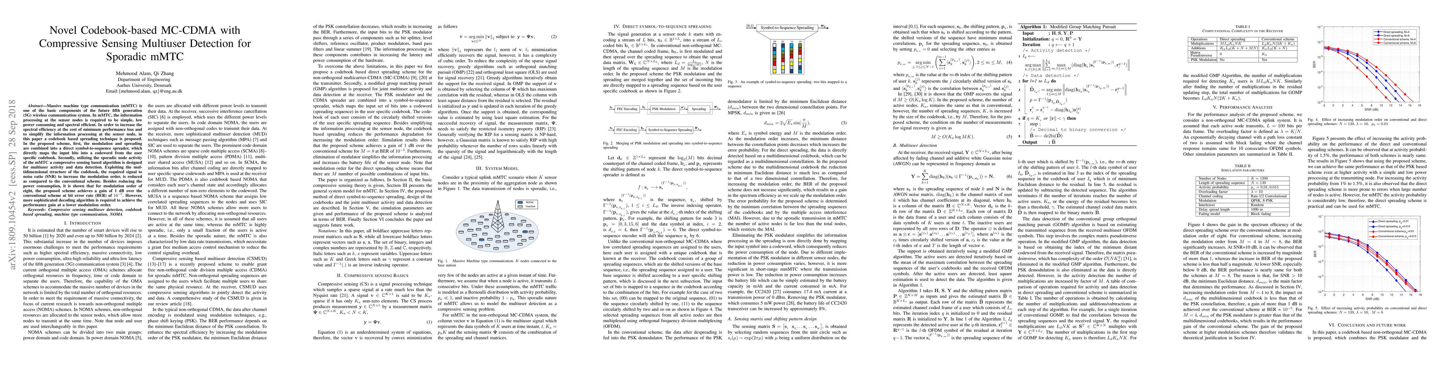 Massive machine type communication (mMTC) is one of the basic components of the future fifth generation (5G) wireless communication system. In mMTC, the information processing at the sensor nodes is required to be simple, low power consuming and spectral efficient. In order to increase the spectral efficiency at the cost of minimum performance loss and to simplify the information processing at the sensor node, in this paper a codebook based spreading technique is proposed. In the proposed scheme, first, the modulation and spreading are combined into a direct symbol-to-sequence spreader, which directly maps the input bits into a codeword from the user specific codebook. Secondly, utilizing the sporadic node activity of the mMTC a compressive sensing based algorithm is designed for multiuser activity and data detection. Exploiting the multidimensional structure of the codebook, the required signal to noise ratio (SNR) to increase the modulation order, is reduced as compared to the conventional scheme. Besides reducing the power consumption, it is shown that for modulation order of eight, the proposed scheme achieves a gain of 1 dB over the conventional scheme at bit error rate (BER) of 10^-5. However, more sophisticated decoding algorithm is required to achieve the performance gain at a lower modulation order.