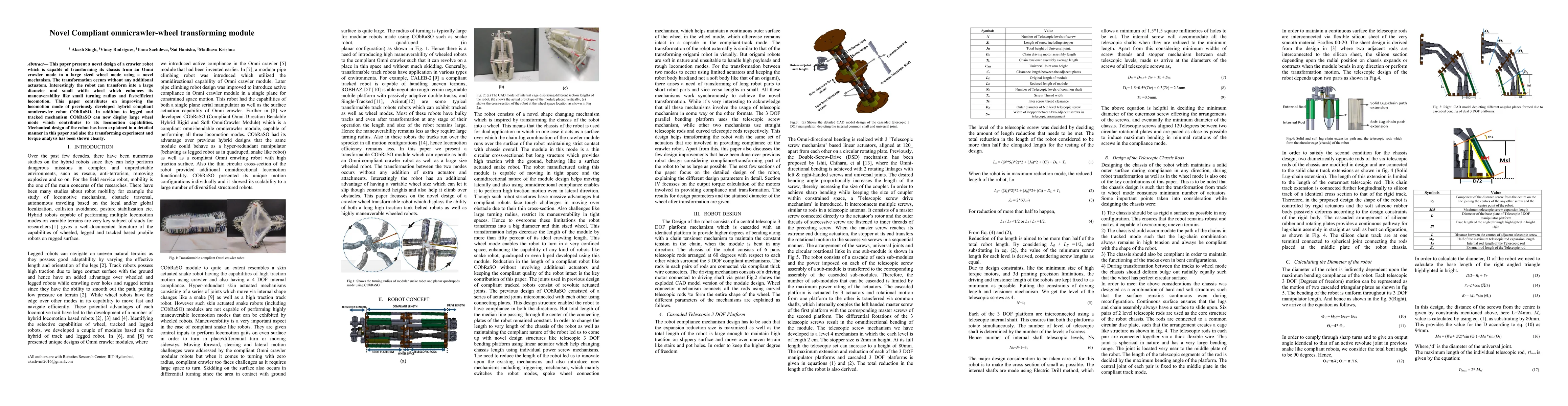 This paper presents a novel design of a crawler robot which is capable of transforming its chassis from an Omni crawler mode to a large-sized wheel mode using a novel mechanism. The transformation occurs without any additional actuators. Interestingly the robot can transform into a large diameter and small width wheel which enhances its maneuverability like small turning radius and fast/efficient locomotion. This paper contributes on improving the locomotion mode of previously developed hybrid compliant omnicrawler robot CObRaSO. In addition to legged and tracked mechanism, CObRaSO can now display large wheel mode which contributes to its locomotion capabilities. Mechanical design of the robot has been explained in a detailed manner in this paper and also the transforming experiment and torque analysis has been shown clearly