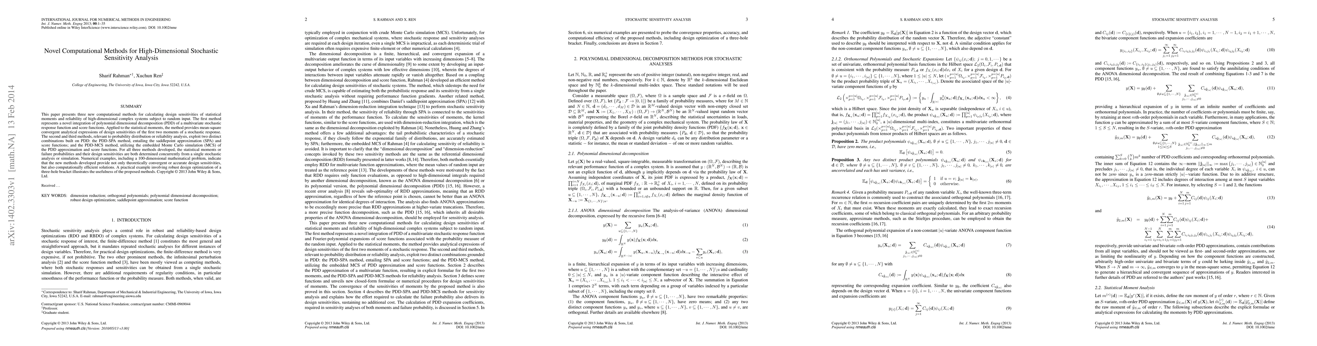 This paper presents three new computational methods for calculating design sensitivities of statistical moments and reliability of high-dimensional complex systems subject to random input. The first method represents a novel integration of polynomial dimensional decomposition (PDD) of a multivariate stochastic response function and score functions. Applied to the statistical moments, the method provides mean-square convergent analytical expressions of design sensitivities of the first two moments of a stochastic response. The second and third methods, relevant to probability distribution or reliability analysis, exploit two distinct combinations built on PDD: the PDD-SPA method, entailing the saddlepoint approximation (SPA) and score functions; and the PDD-MCS method, utilizing the embedded Monte Carlo simulation (MCS) of the PDD approximation and score functions. For all three methods developed, the statistical moments or failure probabilities and their design sensitivities are both determined concurrently from a single stochastic analysis or simulation. Numerical examples, including a 100-dimensional mathematical problem, indicate that the new methods developed provide not only theoretically convergent or accurate design sensitivities, but also computationally efficient solutions. A practical example involving robust design optimization of a three-hole bracket illustrates the usefulness of the proposed methods.