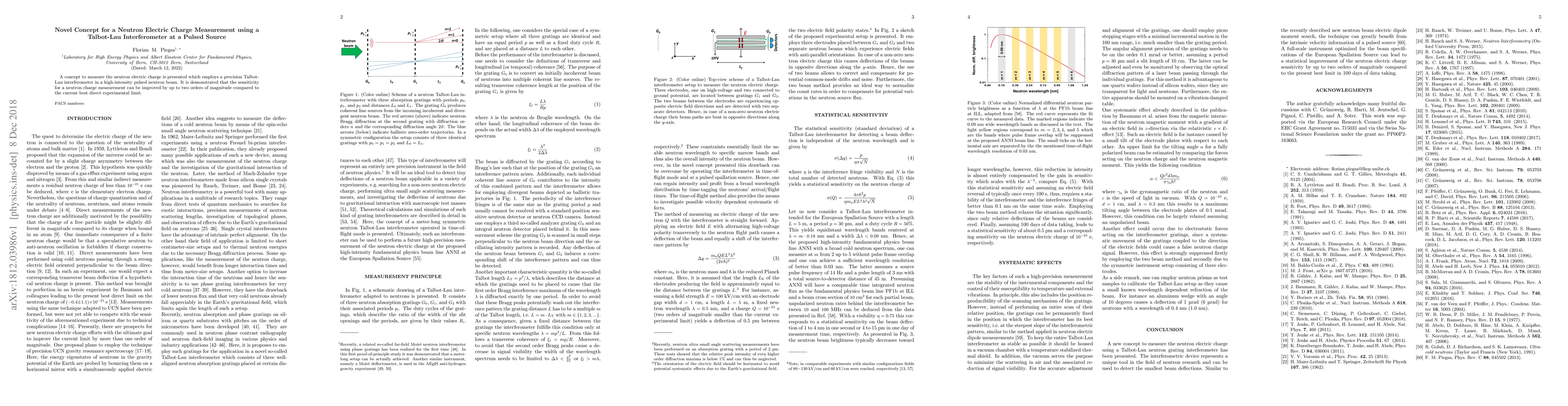 This paper proposes a novel method using a Talbot-Lau interferometer in a pulsed neutron beam to measure the neutron electric charge, potentially improving sensitivity by two orders of magnitude over existing methods.