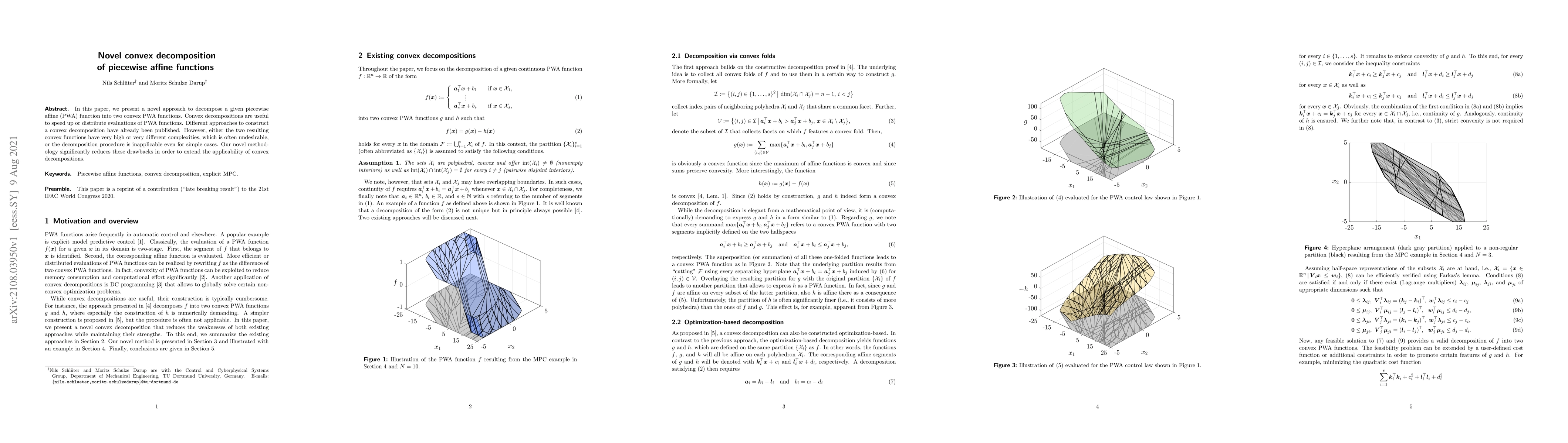This paper introduces a novel convex decomposition method for piecewise affine functions, aiming to produce two convex PWA functions with balanced complexity, addressing the limitations of existing approaches that either yield high complexity or are inapplicable to simple cases.