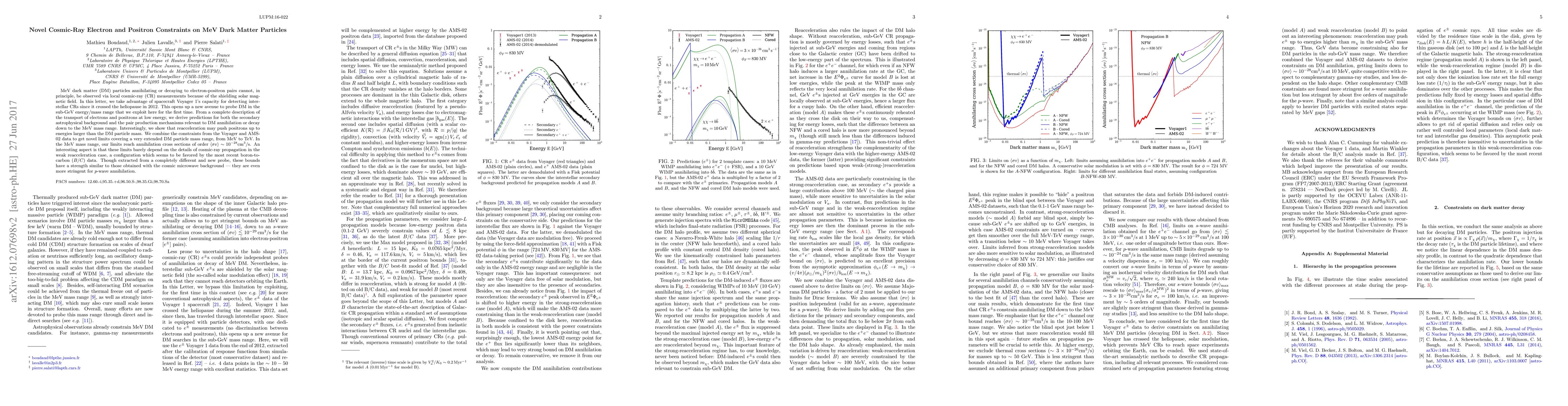 MeV dark matter (DM) particles annihilating or decaying to electron-positron pairs cannot, in principle, be observed via local cosmic-ray (CR) measurements because of the shielding solar magnetic field. In this letter, we take advantage of spacecraft Voyager 1's capacity for detecting interstellar CRs since it crossed the heliopause in 2012. This opens up a new avenue to probe DM in the sub-GeV energy/mass range that we exploit here for the first time. From a complete description of the transport of electrons and positrons at low energy, we derive predictions for both the secondary astrophysical background and the pair production mechanisms relevant to DM annihilation or decay down to the MeV mass range. Interestingly, we show that reacceleration may push positrons up to energies larger than the DM particle mass. We combine the constraints from the Voyager and AMS-02 data to get novel limits covering a very extended DM particle mass range, from MeV to TeV. In the MeV mass range, our limits reach annihilation cross sections of order $\langle \sigma v\rangle \sim 10^{-28}{\rm cm^3/s}$. An interesting aspect is that these limits barely depend on the details of cosmic-ray propagation in the weak reacceleration case, a configuration which seems to be favored by the most recent boron-to-carbon ($B/C$) data. Though extracted from a completely different and new probe, these bounds have a strength similar to those obtained with the cosmic microwave background --- they are even more stringent for $p$-wave annihilation.