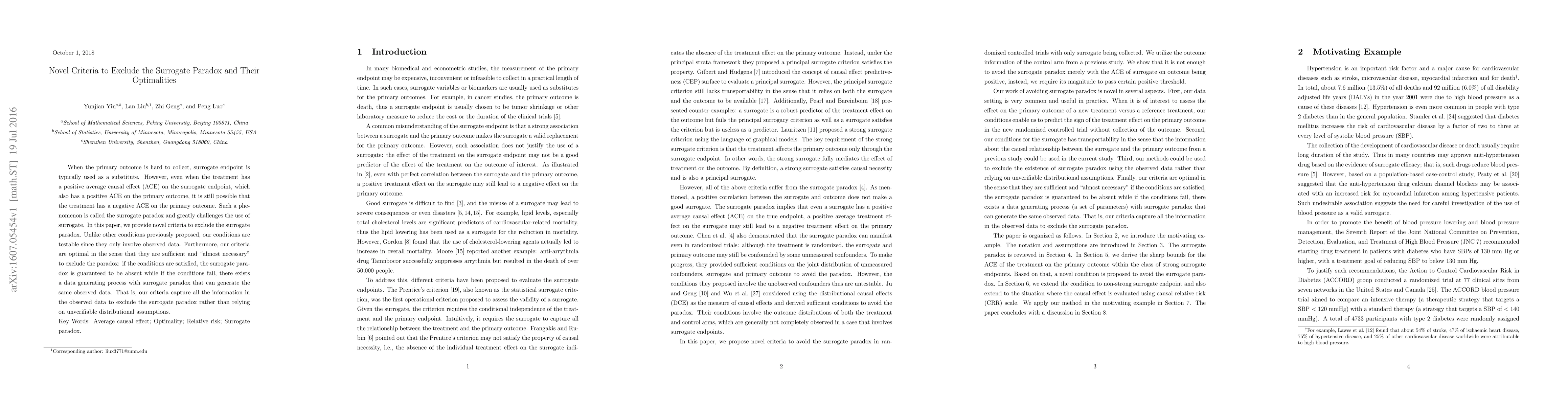 When the primary outcome is hard to collect, surrogate endpoint is typically used as a substitute. However, even when the treatment has a positive average causal effect (ACE) on the surrogate endpoint, which also has a positive ACE on the primary outcome, it is still possible that the treatment has a negative ACE on the primary outcome. Such a phenomenon is called the surrogate paradox and greatly challenges the use of surrogate. In this paper, we provide novel criteria to exclude the surrogate paradox. Unlike other conditions previously proposed, our conditions are testable since they only involve observed data. Furthermore, our criteria are optimal in the sense that they are sufficient and "almost necessary" to exclude the paradox: if the conditions are satisfied, the surrogate paradox is guaranteed to be absent while if the conditions fail, there exists a data generating process with surrogate paradox that can generate the same observed data. That is, our criteria capture all the information in the observed data to exclude the surrogate paradox rather than relying on unverifiable distributional assumptions.