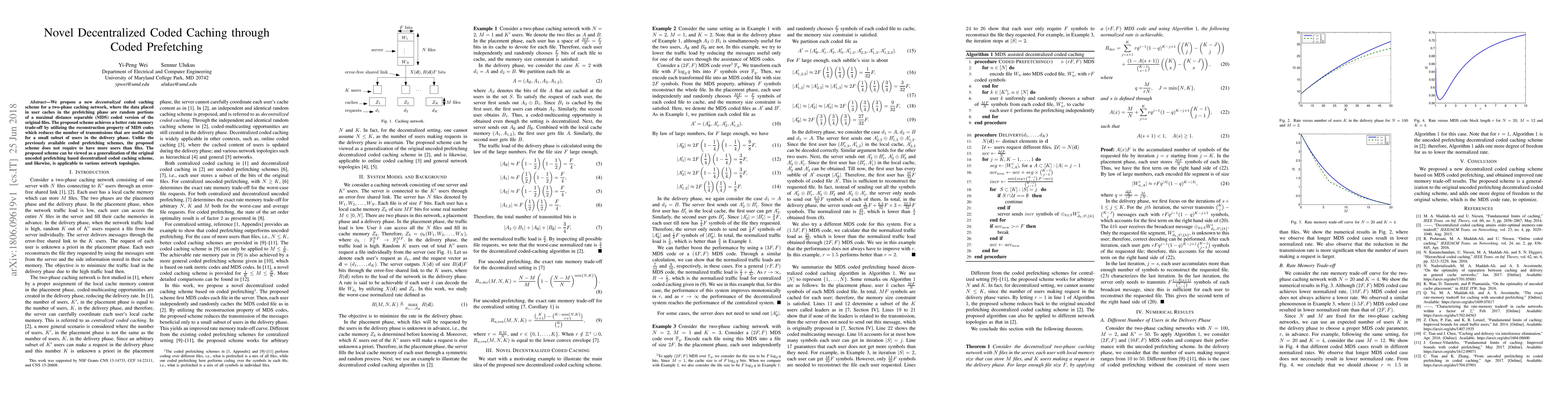 This paper introduces a novel decentralized coded caching scheme that leverages maximal distance separable (MDS) codes for prefetching in a two-phase caching network, improving the rate-memory trade-off without requiring more users than files. The scheme generalizes uncoded prefetching and is applicable to various network topologies.