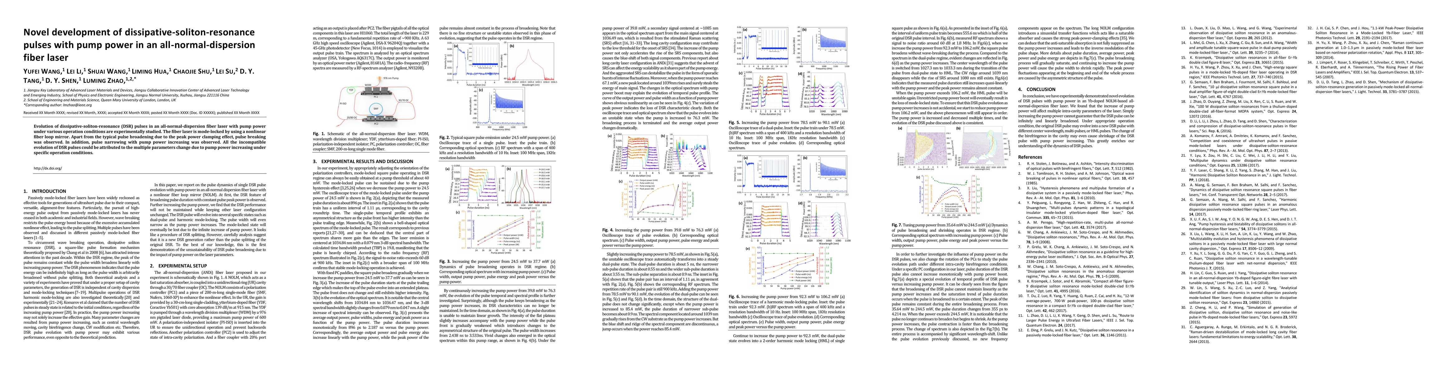 The paper presents experimental evidence of novel DSR pulse evolution with pump power in an all-normal-dispersion fiber laser, highlighting the influence of multiple intra-cavity parameters and the potential for transitioning to different pulse states.