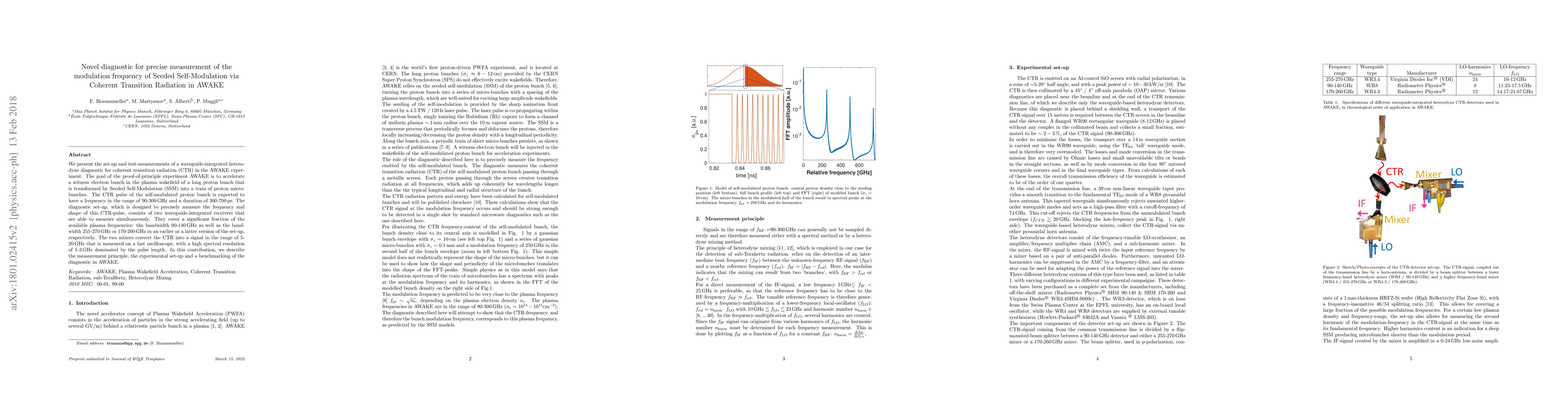 We present the set-up and test-measurements of a waveguide-integrated heterodyne diagnostic for coherent transition radiation (CTR) in the AWAKE experiment. The goal of the proof-of-principle experiment AWAKE is to accelerate a witness electron bunch in the plasma wakefield of a long proton bunch that is transformed by Seeded Self-Modulation (SSM) into a train of proton micro-bunches. The CTR pulse of the self-modulated proton bunch is expected to have a frequency in the range of 90-300 GHz and a duration of 300-700 ps. The diagnostic set-up, which is designed to precisely measure the frequency and shape of this CTR-pulse, consists of two waveguide-integrated receivers that are able to measure simultaneously. They cover a significant fraction of the available plasma frequencies: the bandwidth 90-140 GHz as well as the bandwidth 255-270 GHz or 170-260 GHz in an earlier or a latter version of the set-up, respectively. The two mixers convert the CTR into a signal in the range of 5-20 GHz that is measured on a fast oscilloscope, with a high spectral resolution of 1-3 GHz dominated by the pulse length. In this contribution, we will describe the measurement principle, the experimental set-up and a benchmarking of the diagnostic in AWAKE.