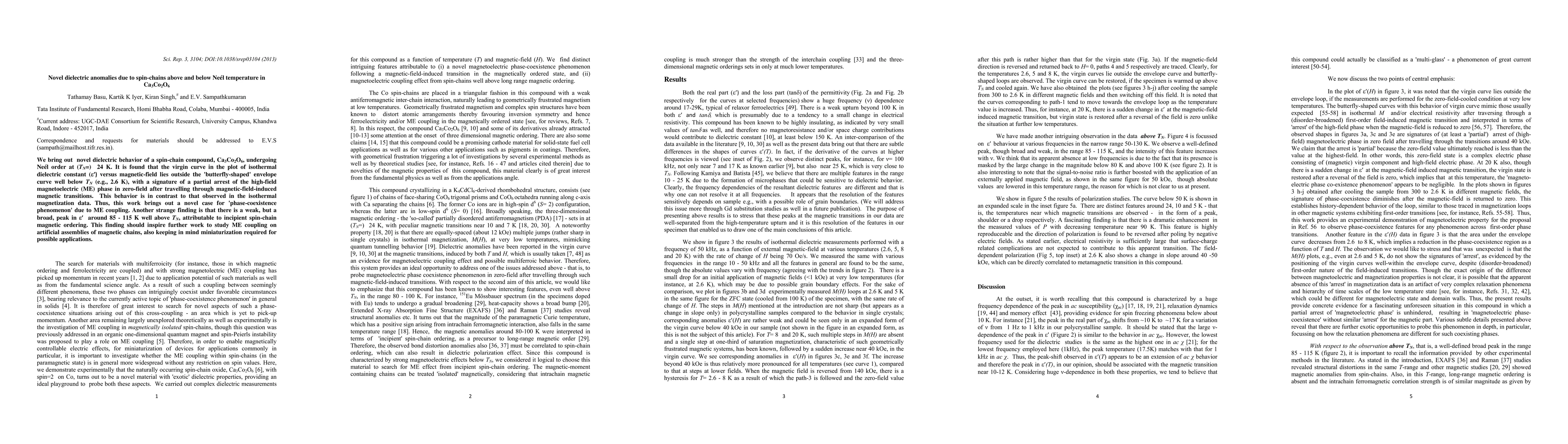 We bring out novel dielectric behavior of a spin-chain compound, Ca3Co2O6, undergoing Neel order at (T_N=) 24 K. It is found that the virgin curve in the plot of isothermal dielectric constant versus magnetic-field lies outside the 'butterfly-shaped' envelope curve well below T_N (e.g., 2.6 K), with a signature of a partial arrest of the high-field magnetoelectric ME) phase in zero-field after travelling through magnetic-field-induced magnetic transitions. This behavior is in contrast to that observed in the isothermal magnetization data. Thus, this work brings out a novel case for 'phase-coexistence phenomenon' due to ME coupling. Another strange finding is that there is a weak, but a broad, peak in dielectric constant around 85 - 115 K well above T_N, attributable to incipient spin-chain magnetic ordering. This finding should inspire further work to study ME coupling on artificial assemblies of magnetic chains, also keeping in mind miniaturization required for possible applications.