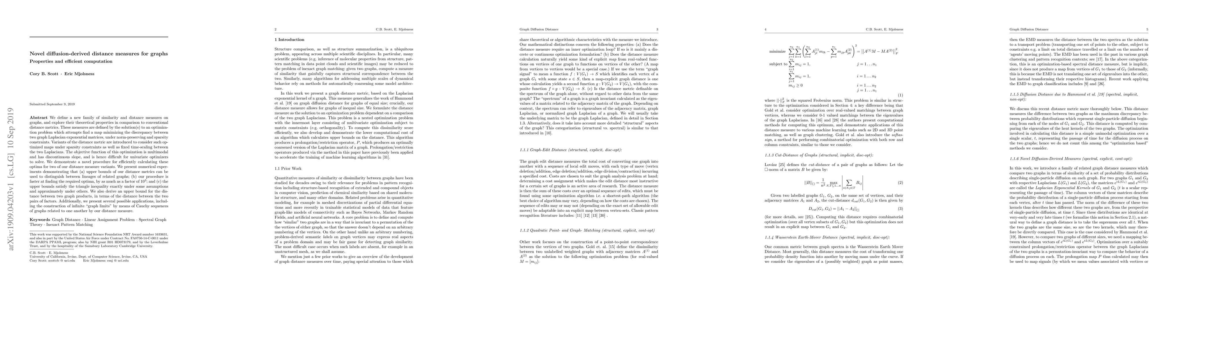 This paper introduces novel diffusion-derived distance measures for graphs, defined via optimization to minimize discrepancies between graph Laplacian exponential matrices. The authors demonstrate efficient calculation methods and show their effectiveness in distinguishing graph lineages and constructing graph limits.