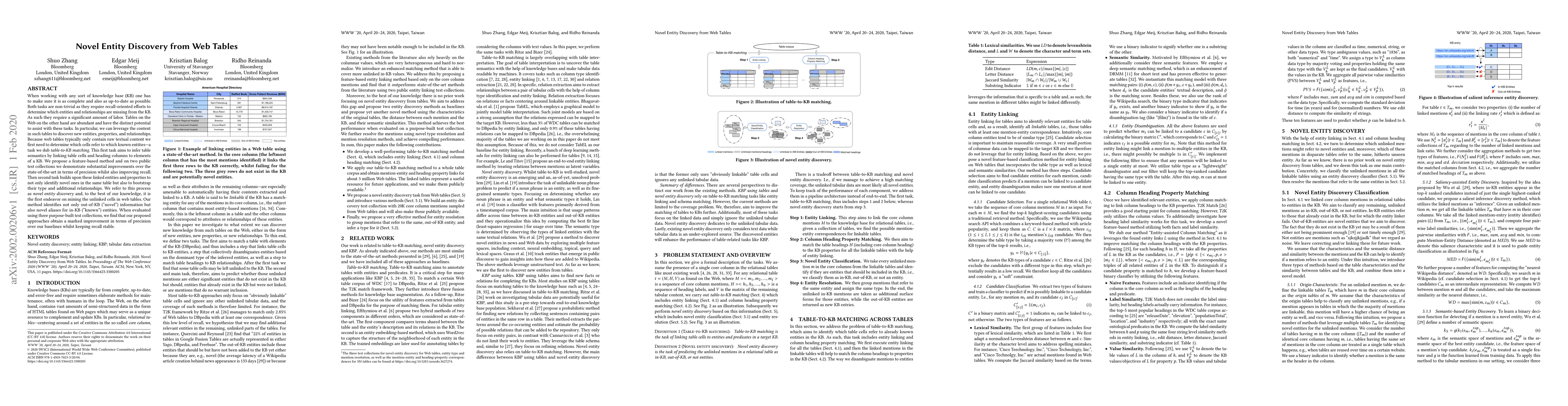 This paper proposes a method for novel entity discovery from web tables to enhance knowledge bases by identifying new entities, properties, and relationships. The approach involves table-to-KB matching and novel entity discovery, achieving improved precision while maintaining stable recall in evaluations.