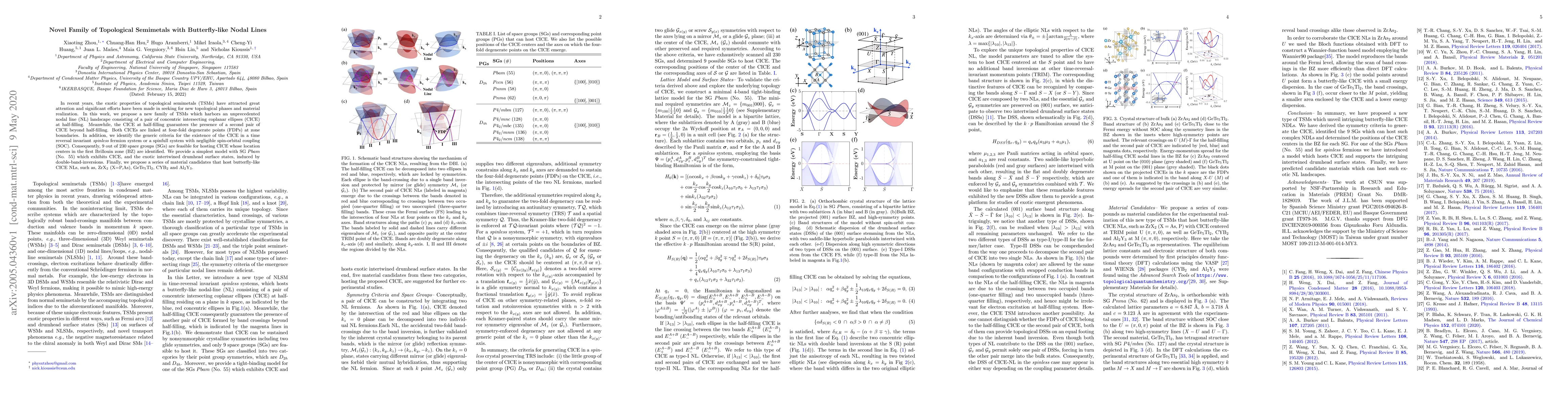Researchers propose a new family of topological semimetals with unique butterfly-like nodal lines, which can exist in 9 out of 230 space groups, and identify potential material candidates.
