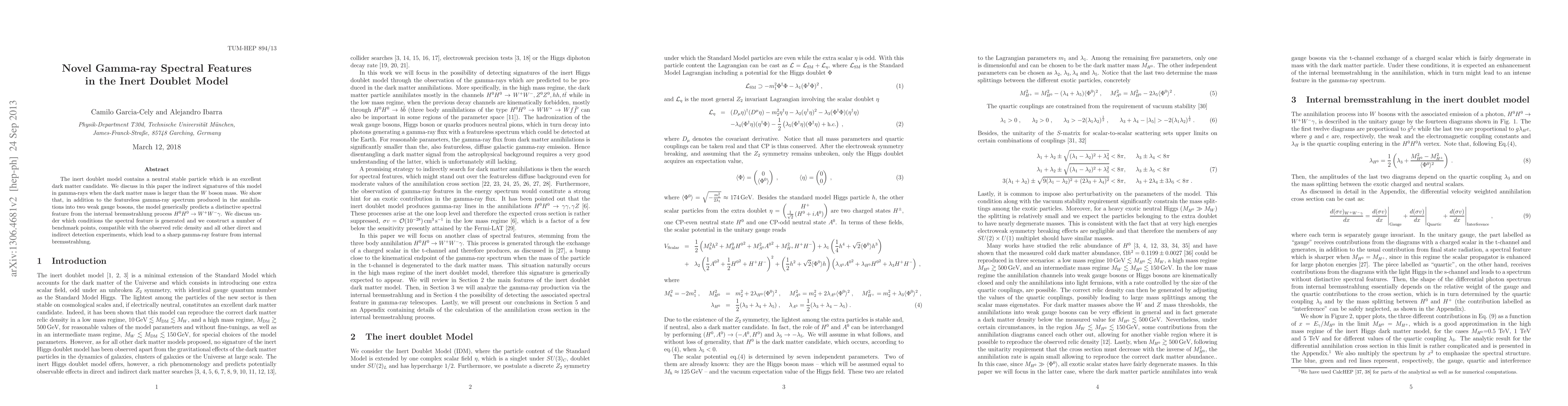 The inert doublet model contains a neutral stable particle which is an excellent dark matter candidate. We discuss in this paper the indirect signatures of this model in gamma-rays when the dark matter mass is larger than the $W$ boson mass. We show that, in addition to the featureless gamma-ray spectrum produced in the annihilations into two weak gauge bosons, the model generically predicts a distinctive spectral feature from the internal bremsstrahlung process $H^0 H^0 \rightarrow W^+ W^- \gamma$. We discuss under which conditions the spectral feature is generated and we construct a number of benchmark points, compatible with the observed relic density and all other direct and indirect detection experiments, which lead to a sharp gamma-ray feature from internal bremsstrahlung.