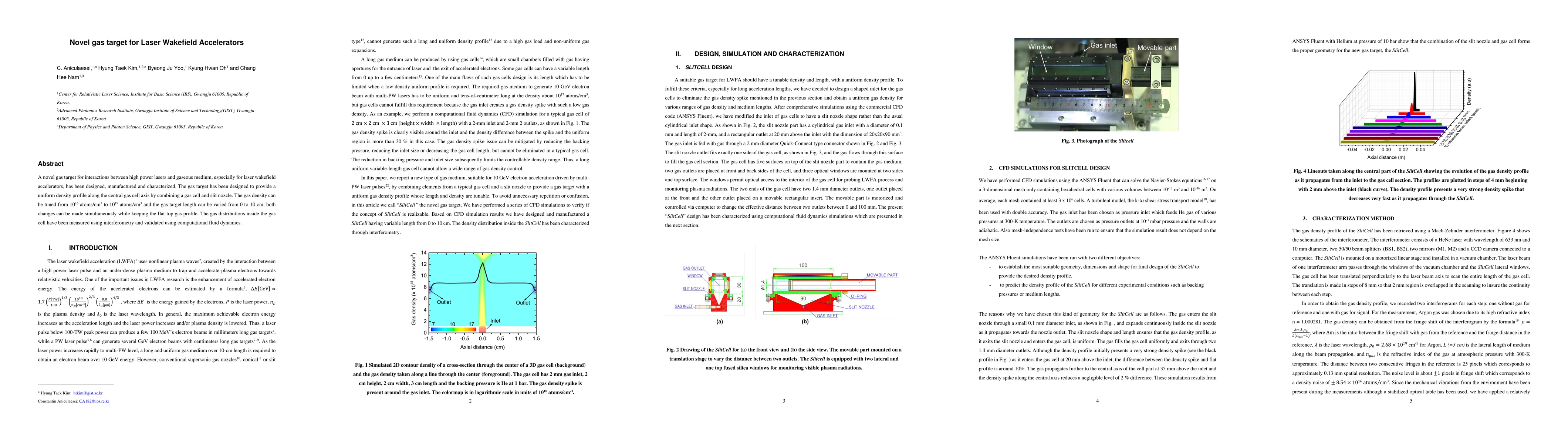 A novel gas target designed for LWFA experiments was presented, consisting of a gas cell with a slit nozzle that generates a uniform density profile