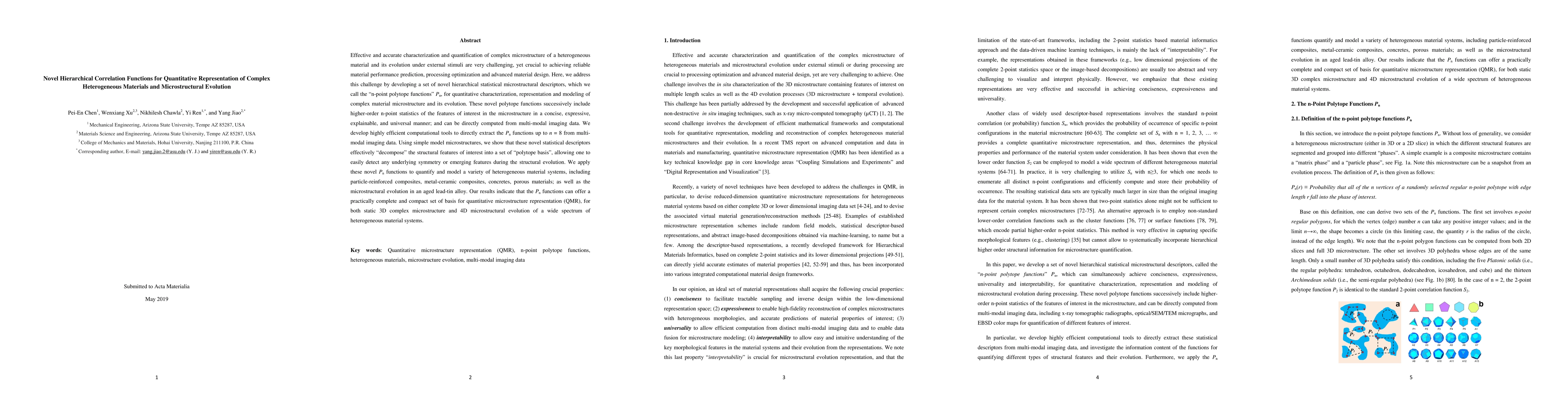 This paper introduces "n-point polytope functions" Pn for quantitative representation of complex heterogeneous material microstructures and their evolution. These novel hierarchical statistical descriptors decompose structural features into polytope basis, enabling efficient detection of symmetry and emerging features, and are applied to various material systems for reliable performance prediction and advanced material design.