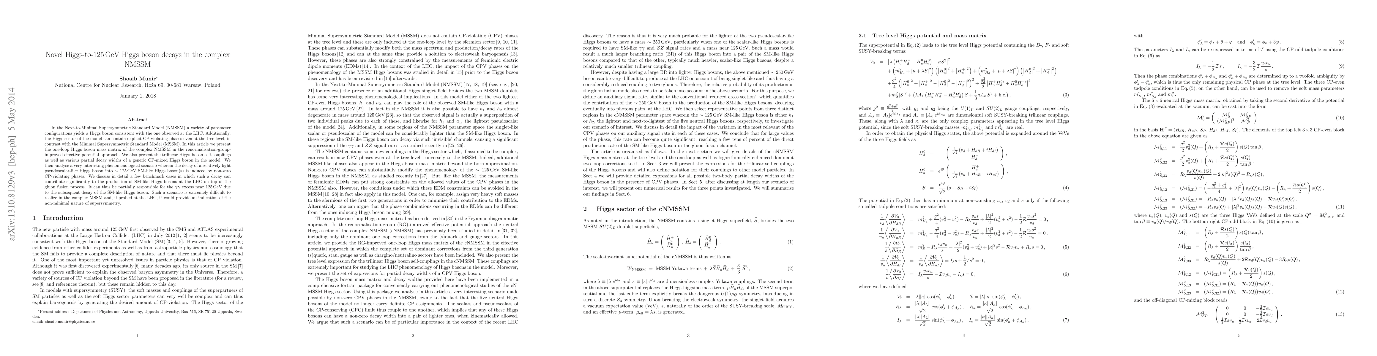 This paper explores novel Higgs-to-125 GeV Higgs boson decay mechanisms in the complex NMSSM, revealing CP-violating phases that allow a pseudoscalar-like Higgs boson to decay into SM-like Higgs bosons. This scenario, difficult to achieve in the MSSM, could explain the gamma.gamma excess near 125 GeV and indicate the non-minimal nature of supersymmetry if observed at the LHC.