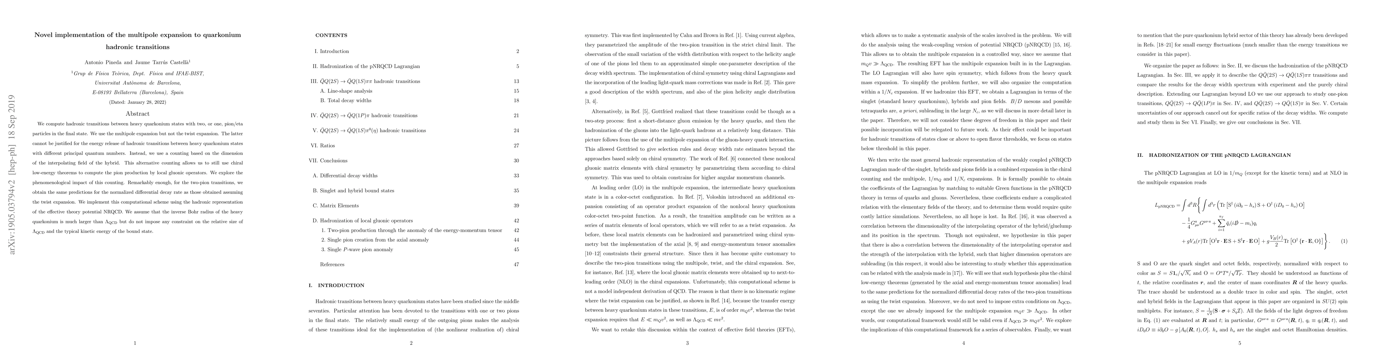 We compute hadronic transitions between heavy quarkonium states with two, or one, pion/eta particles in the final state. We use the multipole expansion but not the twist expansion. The latter cannot be justified for the energy release of hadronic transitions between heavy quarkonium states with different principal quantum numbers. Instead, we use a counting based on the dimension of the interpolating field of the hybrid. This alternative counting allows us to still use chiral low-energy theorems to compute the pion production by local gluonic operators. We explore the phenomenological impact of this counting. Remarkably enough, for the two-pion transitions, we obtain the same predictions for the normalized differential decay rate as those obtained assuming the twist expansion. We implement this computational scheme using the hadronic representation of the effective theory potential NRQCD. We assume that the inverse Bohr radius of the heavy quarkonium is much larger than $\Lambda_{\rm QCD}$ but do not impose any constraint on the relative size of $\Lambda_{\rm QCD}$ and the typical kinetic energy of the bound state.
