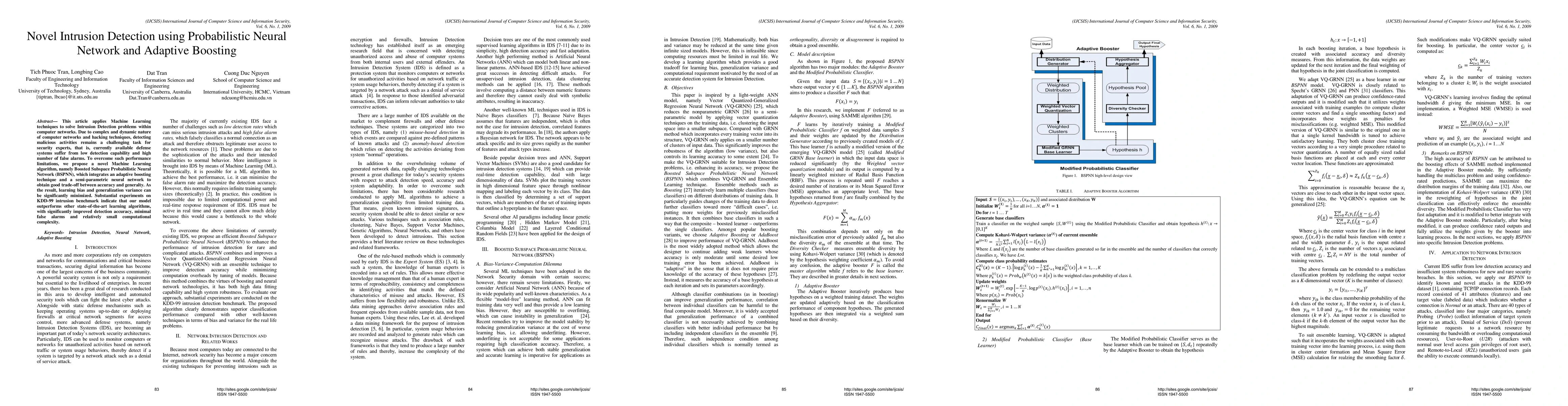 A new machine learning algorithm called Boosted Subspace Probabilistic Neural Network (BSPNN) improves intrusion detection accuracy in computer networks while minimizing false alarms and computational complexity.