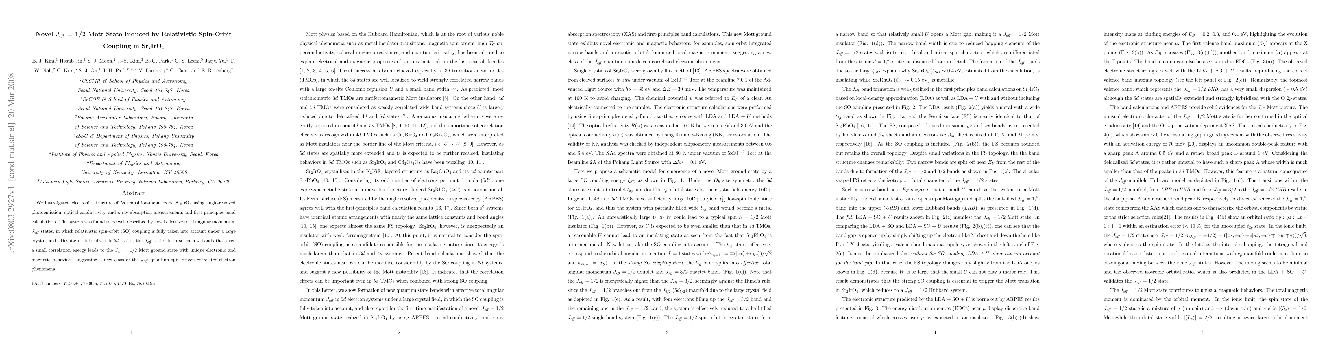 This study reveals that Sr2IrO4 exhibits novel Jeff = 1/2 Mott state behavior driven by relativistic spin-orbit coupling, characterized by narrow bands from its delocalized Ir 5d states. This finding suggests a new class of quantum spin phenomena in correlated-electron systems.
