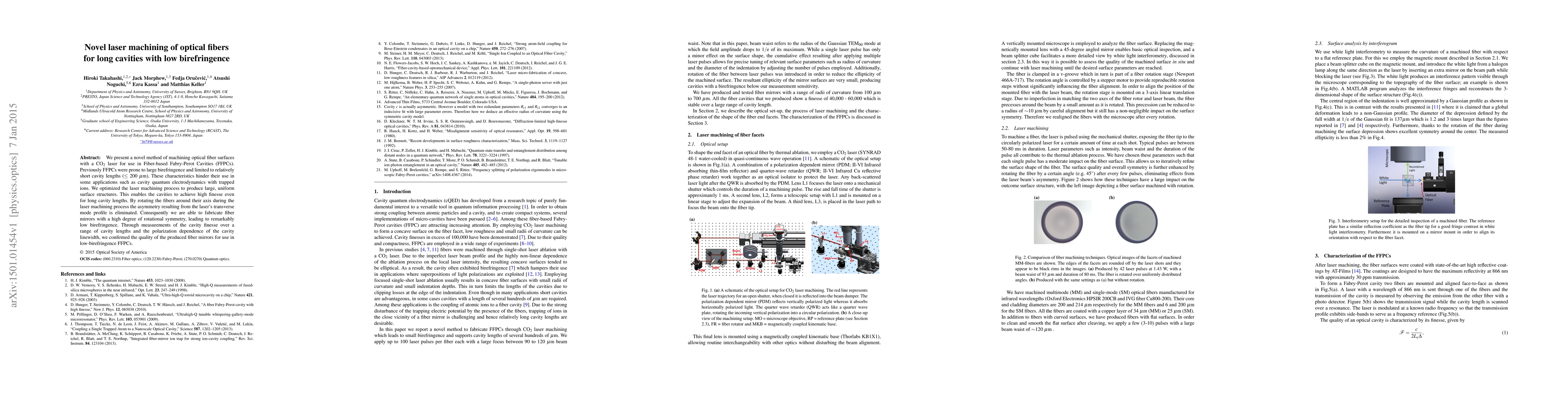 We present a novel method of machining optical fiber surfaces with a CO${}_2$ laser for use in Fiber-based Fabry-Perot Cavities (FFPCs). Previously FFPCs were prone to large birefringence and limited to relatively short cavity lengths ($\le$ 200 $\mu$m). These characteristics hinder their use in some applications such as cavity quantum electrodynamics with trapped ions. We optimized the laser machining process to produce large, uniform surface structures. This enables the cavities to achieve high finesse even for long cavity lengths. By rotating the fibers around their axis during the laser machining process the asymmetry resulting from the laser's transverse mode profile is eliminated. Consequently we are able to fabricate fiber mirrors with a high degree of rotational symmetry, leading to remarkably low birefringence. Through measurements of the cavity finesse over a range of cavity lengths and the polarization dependence of the cavity linewidth, we confirmed the quality of the produced fiber mirrors for use in low-birefringence FFPCs.