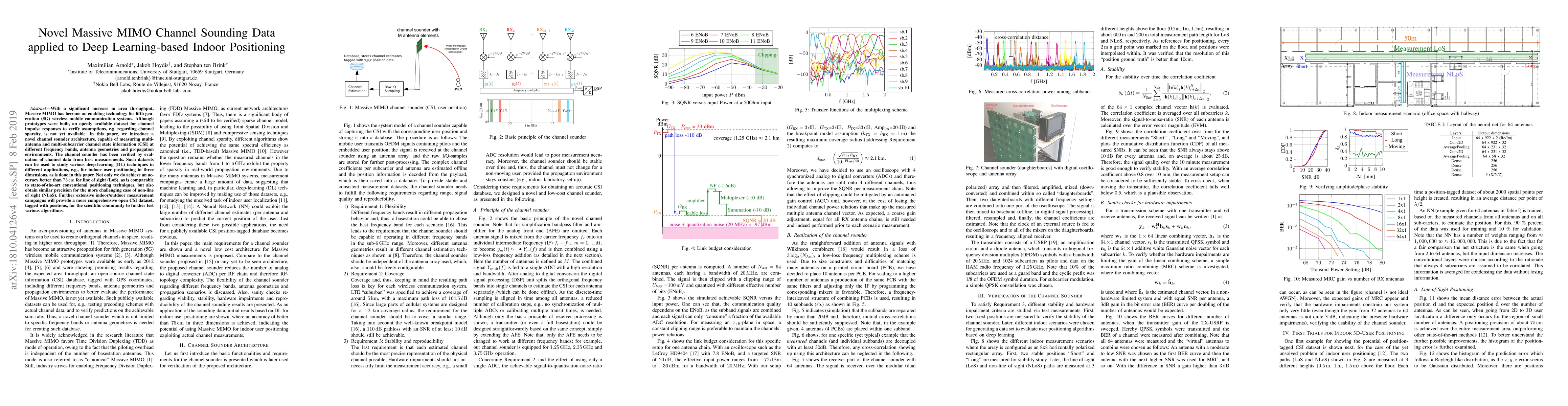 With a significant increase in area throughput, Massive MIMO has become an enabling technology for fifth generation (5G) wireless mobile communication systems. Although prototypes were built, an openly available dataset for channel impulse responses to verify assumptions, e.g. regarding channel sparsity, is not yet available. In this paper, we introduce a novel channel sounder architecture, capable of measuring multiantenna and multi-subcarrier channel state information (CSI) at different frequency bands, antenna geometries and propagation environments. The channel sounder has been verified by evaluation of channel data from first measurements. Such datasets can be used to study various deep-learning (DL) techniques in different applications, e.g., for indoor user positioning in three dimensions, as is done in this paper. Not only we do achieve an accuracy better than 75 cm for line of sight (LoS), as is comparable to state-of-the-art conventional positioning techniques, but also obtain similar precision for the more challenging case of non-line of sight (NLoS). Further extensive indoor/outdoor measurement campaigns will provide a more comprehensive open CSI dataset, tagged with positions, for the scientific community to further test various algorithms.