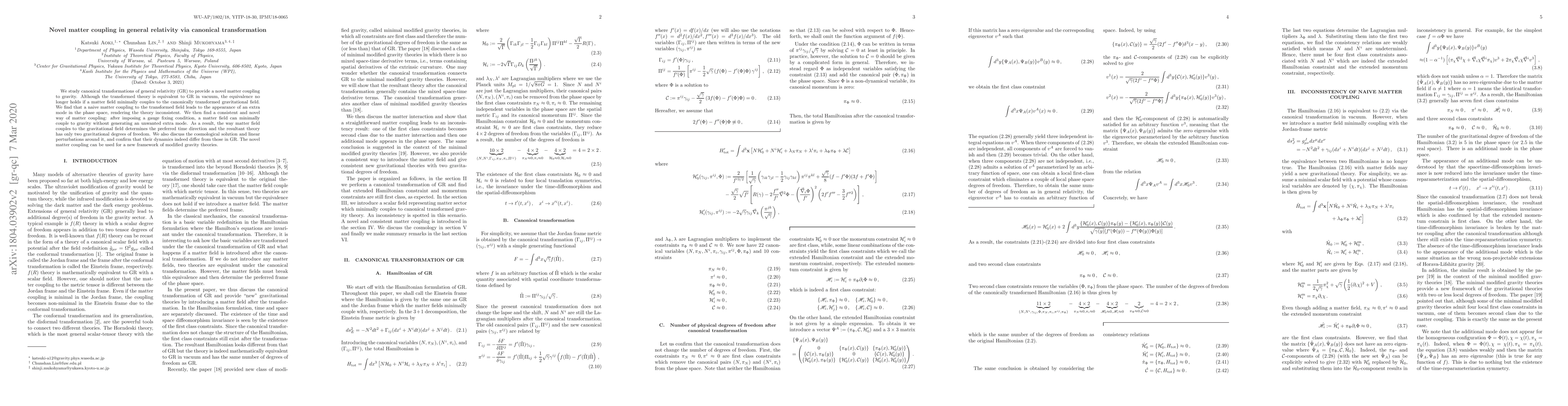 This paper explores canonical transformations of general relativity to introduce a novel coupling between matter and gravity, finding that a consistent coupling method avoids introducing an extra mode, resulting in a theory with only two gravitational degrees of freedom and distinct cosmological dynamics.