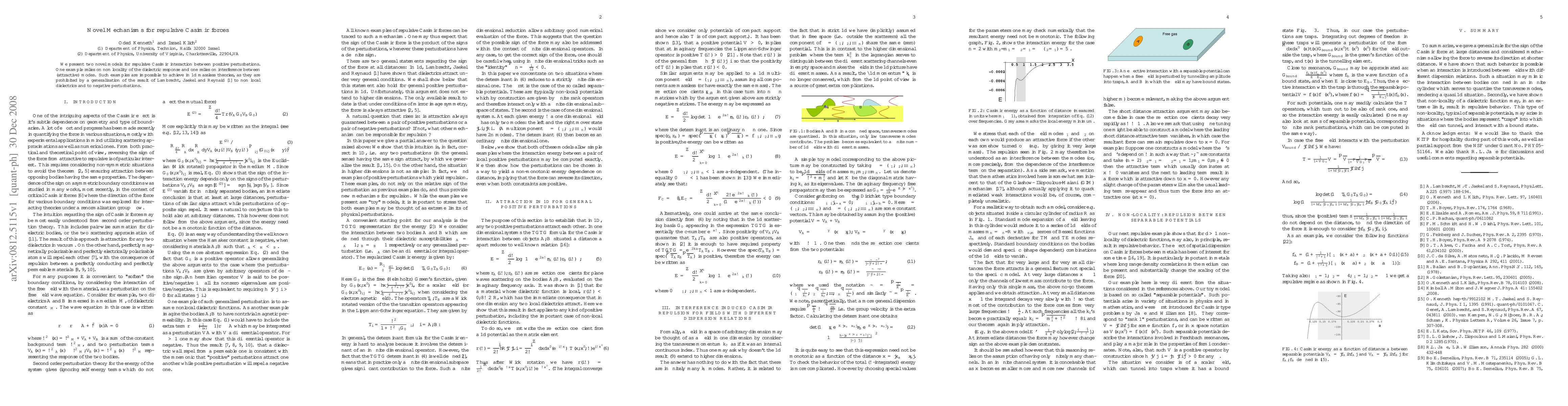 Researchers develop new models for repulsive Casimir forces between positive perturbations, challenging existing theories in 1D massless systems. Their findings rely on non-local dielectric responses and interference between attractive modes.