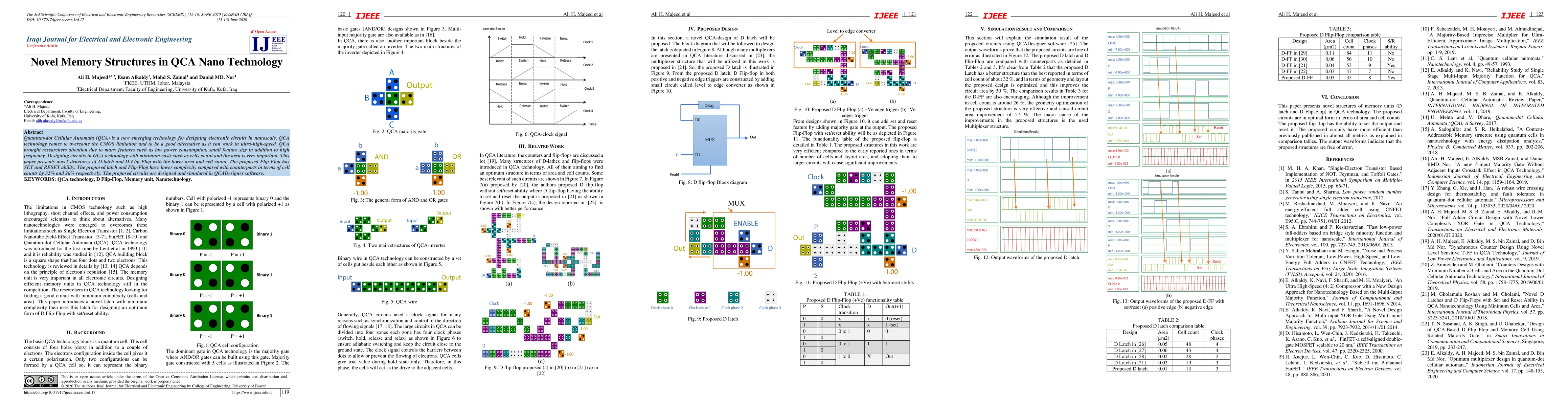This paper introduces novel, more efficient D-latch and D-Flip Flop structures in Quantum-dot Cellular Automata (QCA) technology, reducing cell count by 32% and 26% respectively, compared to existing designs. The proposed circuits were designed and simulated using QCADesigner software.